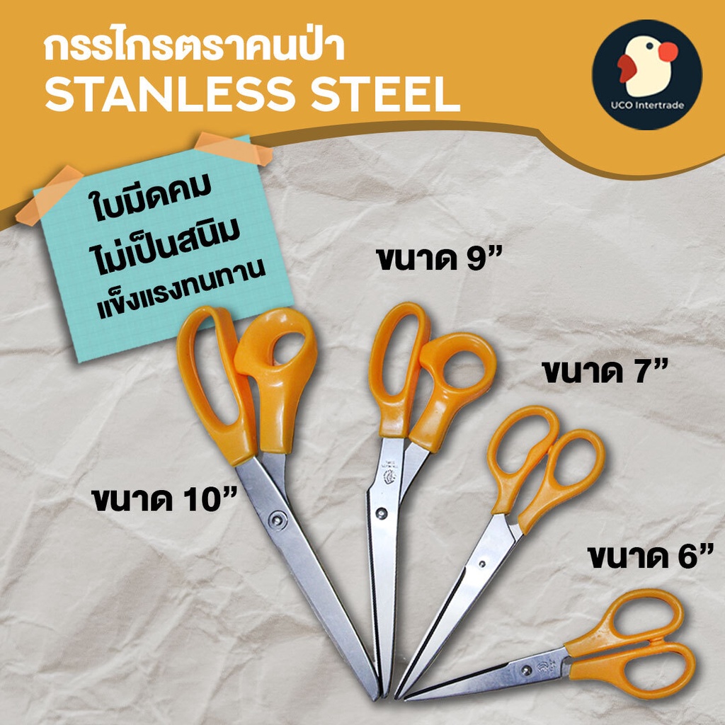 กรรไกร กรรไกรสแตนเลส ตราคนป่า กรรไกรคนป่า เกรดAAA ตัดกระดาษ ตัดผ้า คุณภาพดีไม่ขึ้นสนิม หลายขนาด พร้อมส่ง