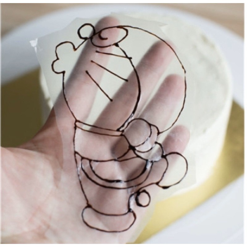 3.ตัดกระดาษที่เราลอกไว้ แล้วนำไปวางบนหน้าเค้ก