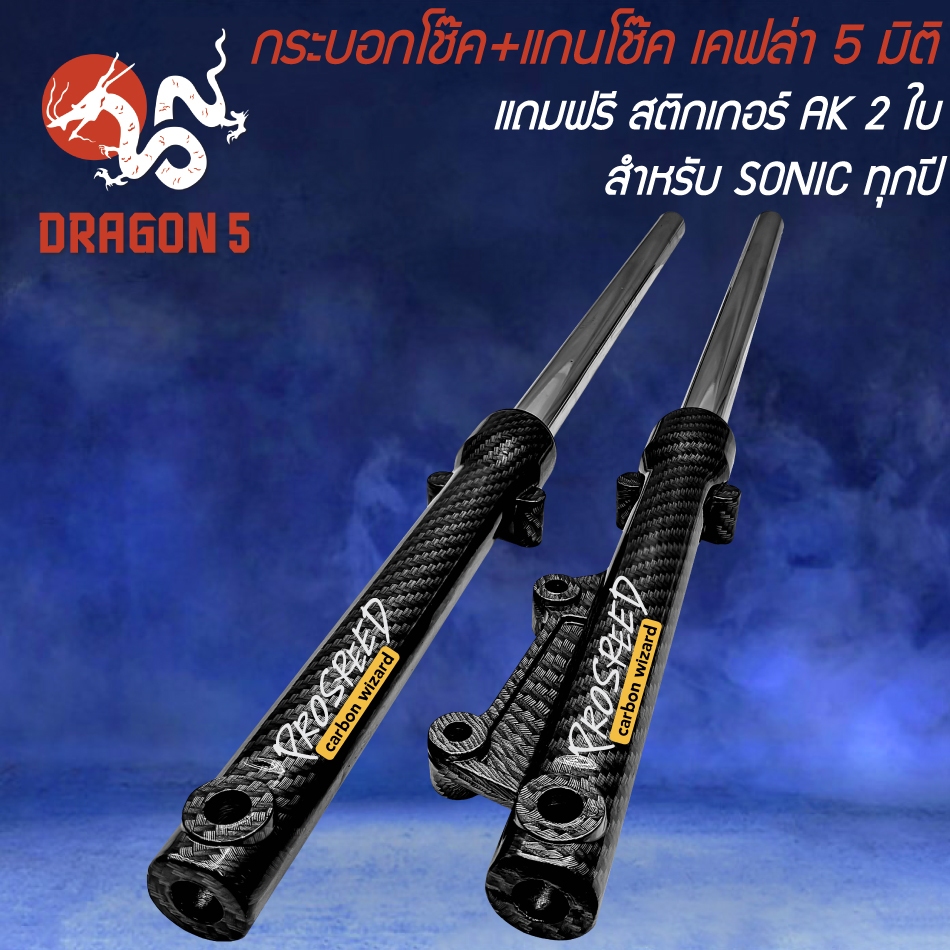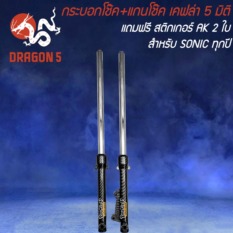 กระบอกโช๊ค+แกนโช๊ค SONIC,โซนิค ทุกปี เคฟล่า 5 มิติ + สติกเกอร์ Prospeed 2 ใบ