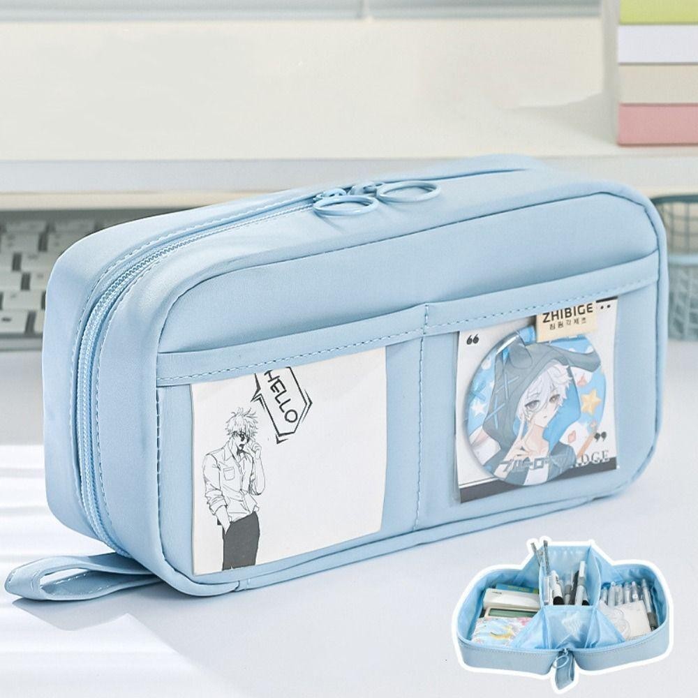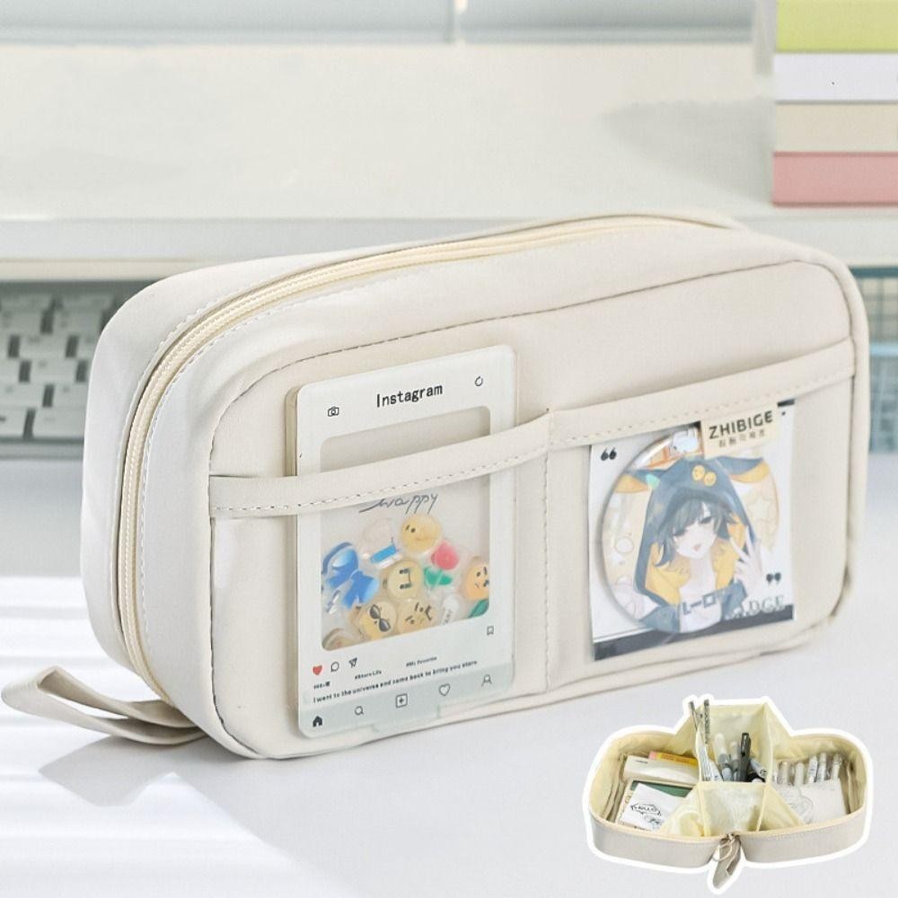กระเป๋าใส่ดินสอกล่องดินสอความจุขนาดใหญ่โปร่งใสกันน้ำเรียบง่าย