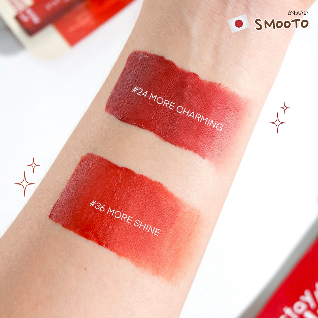 ลิปเนื้อกำมะหยี่ เนื้อนุ่ม เม็ดสีสวยชัด กลบสีปากมิด ไม่ตกร่อง สีติดทนนาน ไม่ติดแมส