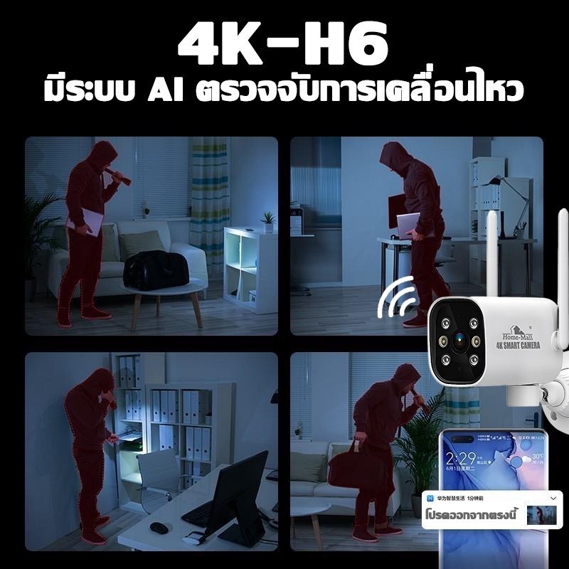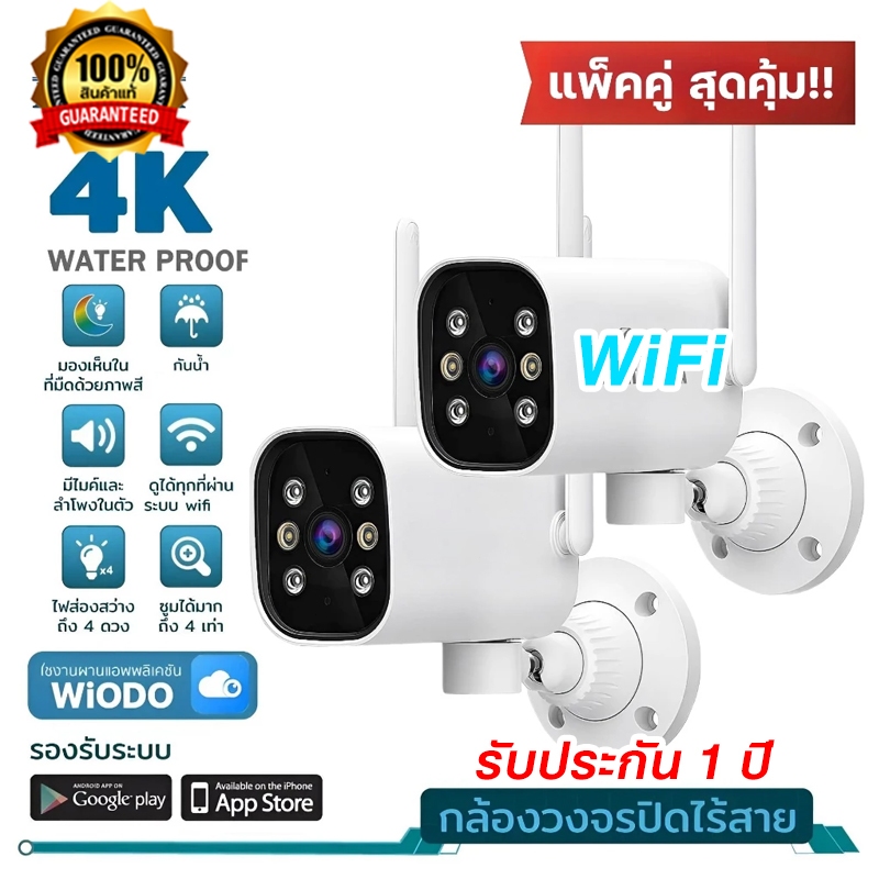 กล้องวงจรปิดกันน้ำ Hisilicon 4K กล้องวงจรปิดติดภายนอกทรง Bullet หมุนซ้ายขวาได้ ตรวจจับความเคลื่อนไหว พูดคุยโต้ตอบ ภาพสี24ชม. ดูผ่านมือถือ App