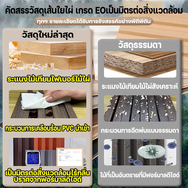 ● วัสดุเป็นส่วนผสมของพลาสติกและไม้ กันน้ำและกันความชื้น(สามารถติดตั้งได้ทั้งภายในและภายนอก)