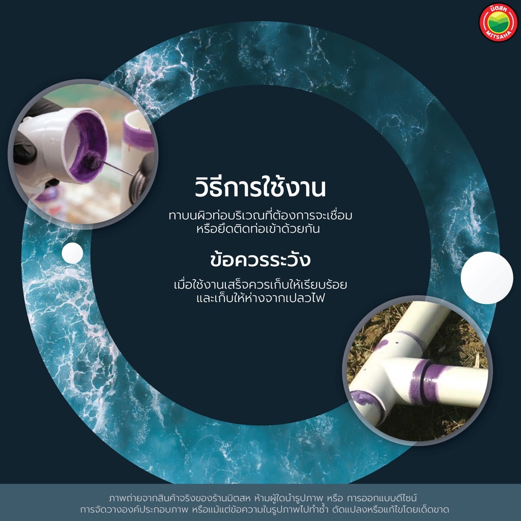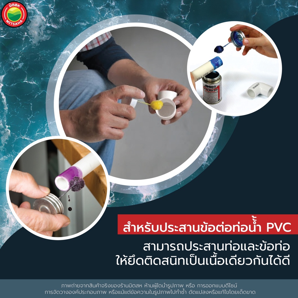 – ใช้ประสานท่อและข้อต่อพีวีซี สำหรับใช้เป็นท่อน้ำดื่มได้