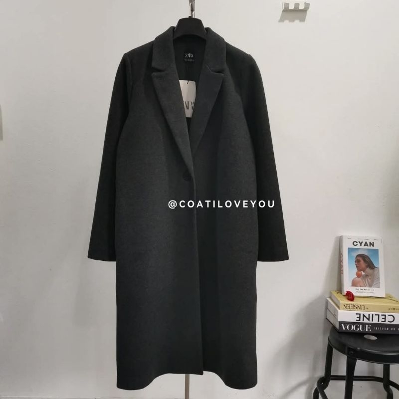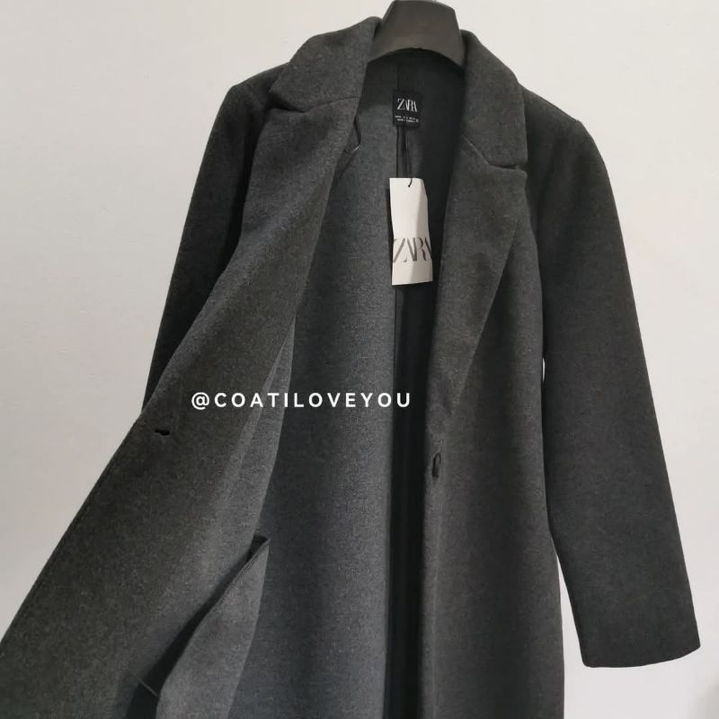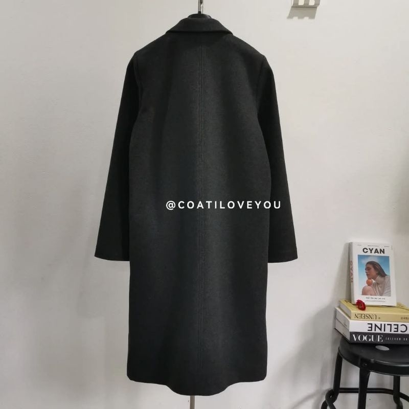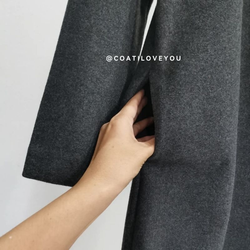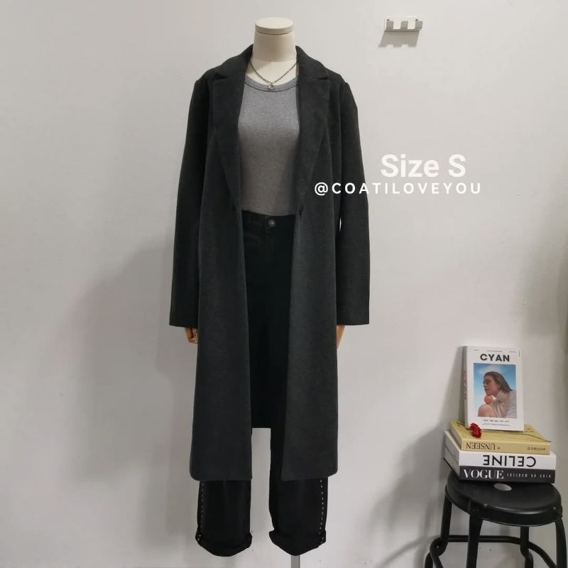 โค้ทตัวยาว สีเทาเข้ม ผ้า polyester ผ้านุ่ม ทิ้งตัว รุ่นนี้แพทเทิ่นสวยมากค่ะ ใส่แล้วดูเพรียว ไม่ตัน มีกระเป๋าซ้ายขวาใช้งานได้จริงใส่กันหนาวอุณหภูมิ 15-20 องศา