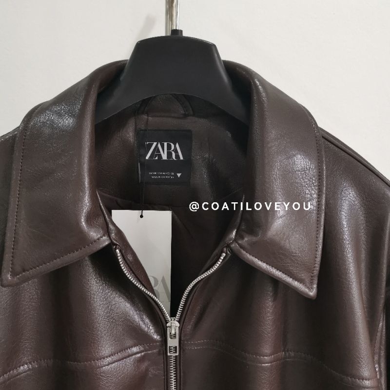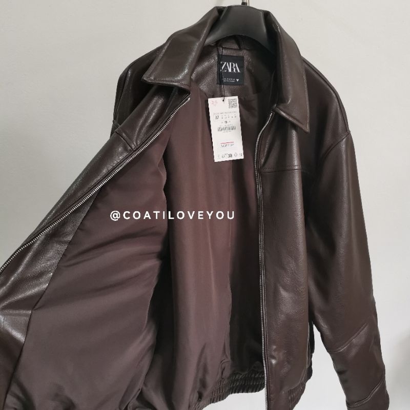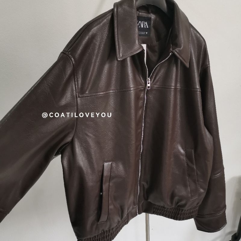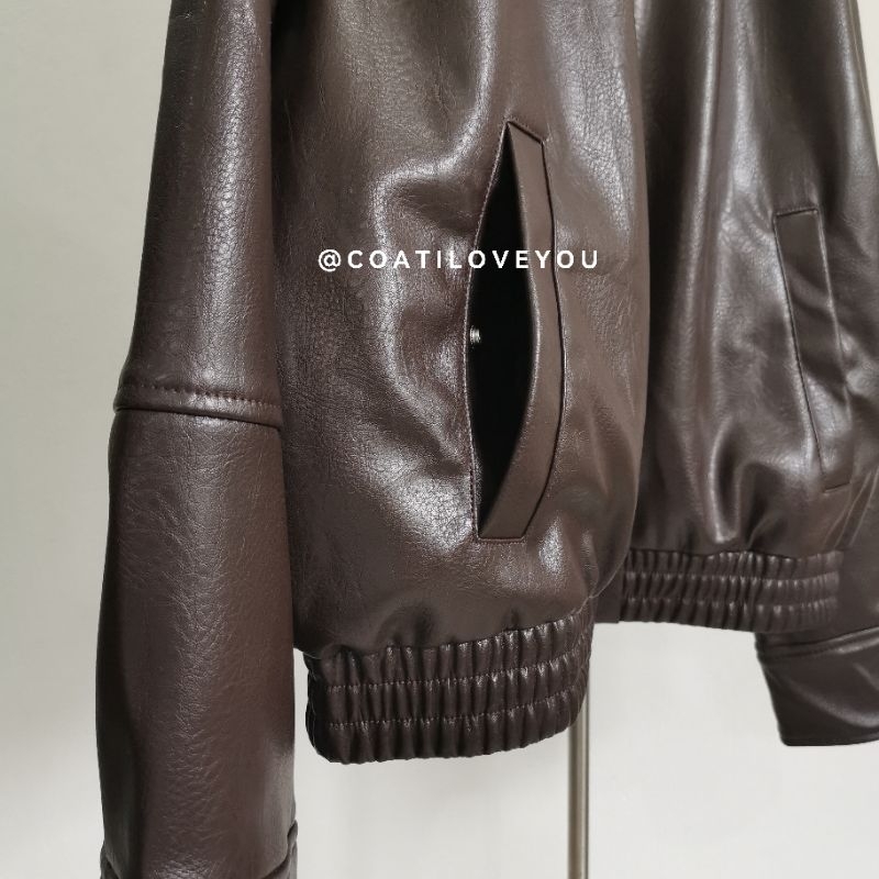 ZARA FAUX LEATHER BOMBER JACKET (BROWN)