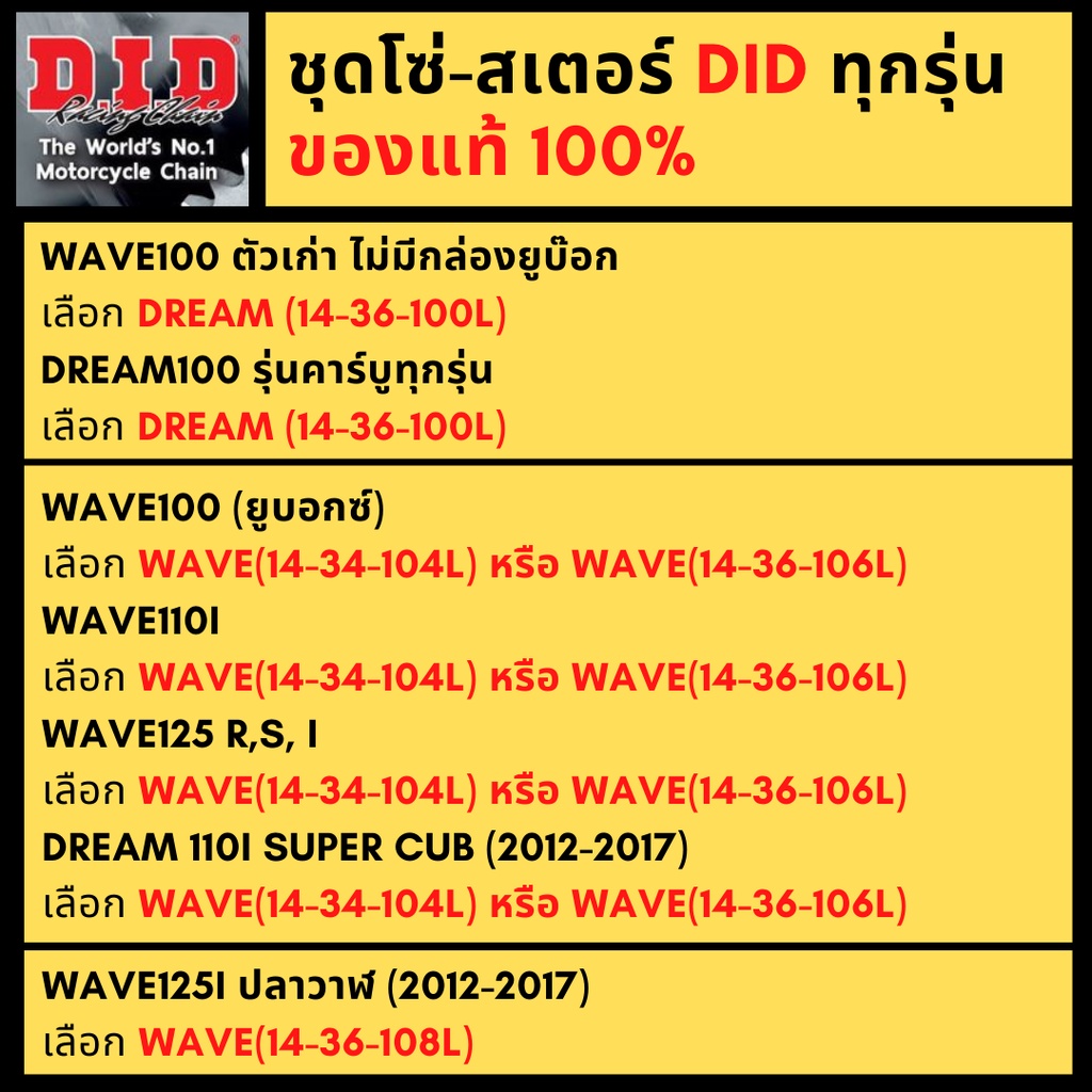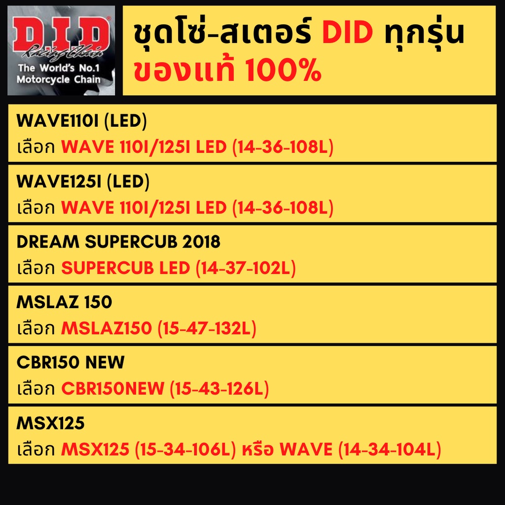 [ของแท้] ชุดโซ่สเตอร์ DID 428 เวฟ100 wave110i wave125i dream เวฟ110i เวฟ 125 เวฟ 125i cbr150 new msx m slaz ของแท้ 100%