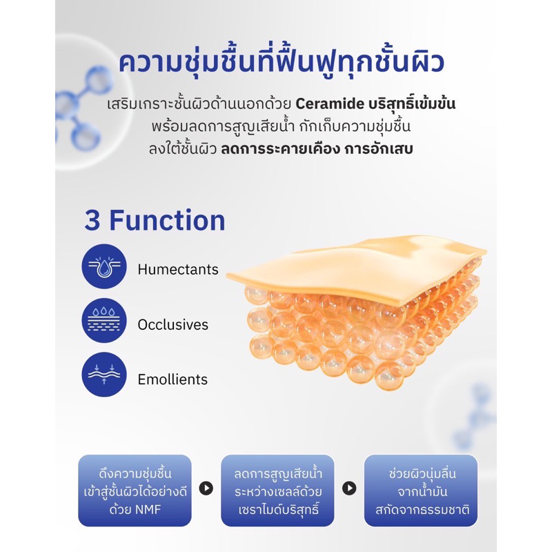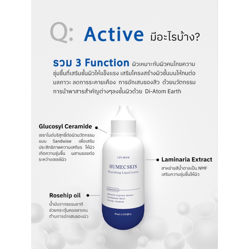 >>>>>>>>>>> รายละเอียดสินค้า <<<<<<<<<<<< Humec skin ยัยฮิลหน้าฉ่ำ ครบถ้วนด้วยการบำรุงผิวทั้ง 3 ฟังชั่น occlusive/emollient/humectant 15 กรัม 179 บาท จุดเด่น มีเซราไมด์ช่วยให้ผิวแข็งแรงมากยิ่งขึ้น ผสานกับน้ำมันจากธรรมชาติที่ช่วยให้ผิวนุ่มบอกลาความกร้าน ต้อนรับความเกาหลีเกาใจ และนอกจากนี้น้องมีนวัตกรรมการขนส่งสารที่ยอดเยี่ยม ที่ให้เห็นผลลัพธ์แบบทันทีและตลอดยาวนาน 24 ชั่วโมง ด้วนนวัตกรรมของ Di atom earth ตัวนี้ยอดขายแรงมากเพราะเนื้อน้องดีจริง แถมยังมีการทดสอบในอาสาสมัครผ่ารแพทย์ผู้เชี่ยวชาญว่าไม่ก่อให้เกิดการระคานเคืองและอุดตัน Key ingredients -ceramide -rosehip oil -evening primrose oil -laminaria extract ข้อมูลสารพักหน้า Nourishing facial/Humec skin ————————————————- เนื้อสัมผัสโลชั่นทาหน้าละลายลงผิวเหมาะกับผู้ที่ต้องการพักผิวหน้า หรือไปใช้คู่กับสกินแคร์เวชสำอางรักษาสิว เนื้อนุ่มบางเบาสบายผิว ไม่ทำร้ายผิว เสริมให้ผิวแข็งแรง มีความอ่อนโยนสูงมากๆ Natural Ceramide ที่มีความบริสุทธ์และมีความเข้มข้นสูง มาทำให้อยู่ในรูป solution เพื่อให้ง่ายต่อการใช้ในสูตร แต่ยังคงประสิทธิภาพ โดย Natural Ceramide ดังกล่าว เป็น Ceramide Type 4,5 ที่สามารถเข้ากับผิวได้ดี ซึ่ง Ceramide Type 4,5 ผิวจะมีการสร้างทดแทนได้ปริมาณน้อย แต่มีความสำคัญสูง เนื่องจากเป็นโครงสร้างหลักของผิว มีคุณสมบัติช่วยให้ผิวนุ่มทันทีหลังจากใช้งาน ช่วยปกป้องให้ผิวคงความชุ่มชื่น เสริมความแข็งแรงของเกราะป้องกันผิว ช่วยฟื้นฟูให้โครงสร้างของผิวแข็งแรงมากขึ้น ไม่แพ้ง่าย ………………………………………………….. Diatom earth กระบวนการทำงาน 1st Delivery system : BRINGS A FILMOGEN EFFECT TO SKIN ให้ผลทางด้าน IMMEDIATE/INTENSIVE MOISTURIZING EFFECT ด้วย lecithin จะทำหน้าที่ FILMOGENIC EFFECT ช่วยคลุมผิว ปกป้องไม่ให้เกิดการสูญเสียน้ำออกจากชั้นผิว (TEL) และช่วยกักเก็บความชุ่มชื้นให้คงอยู่ในทันทีที่ใช้ 2nd Delivery system : RELEASES ACTIVES IN A SUSTAINED REALEASE PROFILE ให้ผลทางด้าน LONG LASTING MOISTURIZING EFFECT ซึ่ง ENCAPSULATED ACTIVES (laminaria extract) ที่อยู่ใน DIATOM-LIKE structures จะค่อยๆ ถูกปลดปล่อยเข้าสู่ชั้นผิว ทำหน้าที่ในการกักเก็บความชุ่มชื้นในชั้นผิว ให้คงอยู่ยาวนาน ถึง 24 ชั่วโมง คุณสมบัติ Avoids water loss: ช่วยป้องกันการสูญเสียน้ำ Keeps skin hydrated: ช่วยกักเก็บความชุ่มชื้นให้คงอยู่กับผิว Dual-delivery system: ผสานนวัตกรรมการนำส่งสารสำคัญอันทรงประสิทธิภาพ 2 ระบบ เพื่อให้ประสิทธิภาพสูงสุดในการดูแลเรื่องความชุ่มชื้นผิว Short and long-lasting moisturizing effect: ช่วยกักเก็บความชุ่มชื้นให้คงอยู่ในทันทีที่ใช้และให้คงอยู่ยาวนาน ถึง 24 ชั่วโมง …………………………………………… Evening Primrose Oil พริมโรสคือนํ้มันสกัดจากเมล็ดดอกอีฟนิ่งพริมโรสมีสารสําคัญระเภทกรดไขมันสัตว์ใน กลุ่มโอเมก้า6คือGamma linolenicacid(GLA)และLinolieicacid(LA)ซึ่งมีความจําเป็นต่อร่างกาย เพราะไม่สามารถสร้างได้เอง กรดไขมัน จํ