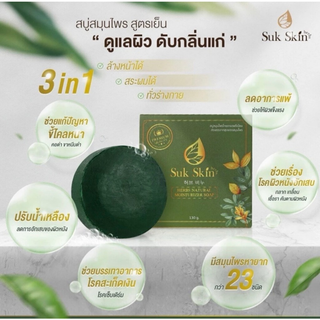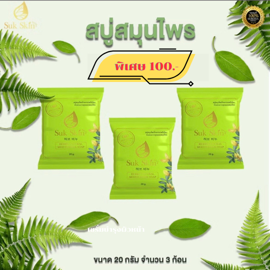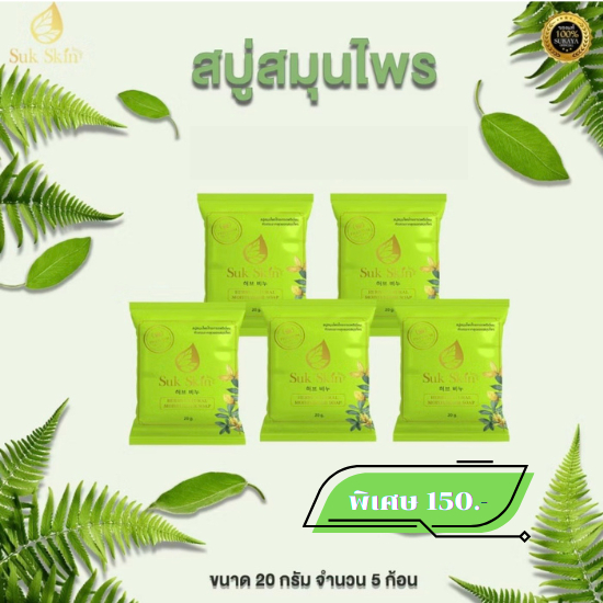 เซต 3 สบู่สมุนไพรสุขสกิน ขนาด 20 กรัม จำนวน 5 ก้อน มูลค่า 190*5=950 บาท
