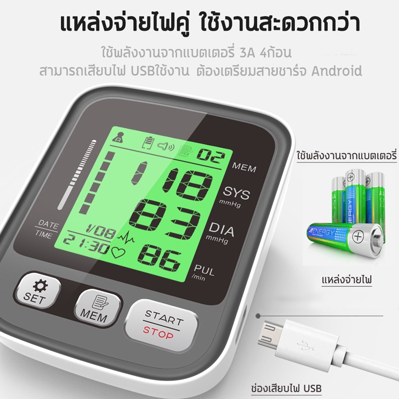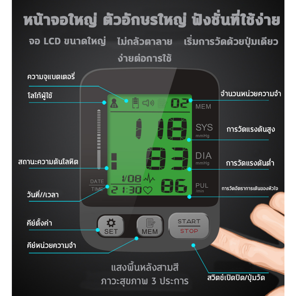 – ช่วงค่าการวัด ค่าความดันบน/ล่าง : 0 – 299 mmHg (Systolic & Diastolic Pressure)