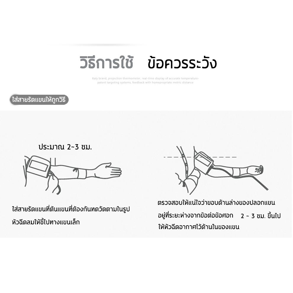 – ใช้สายที่ต้นแขนให้แน่นโดยให้เว้นระยะห่างจากข้อพับที่แขนประมาณ 1.0 – 1.5 ซม.