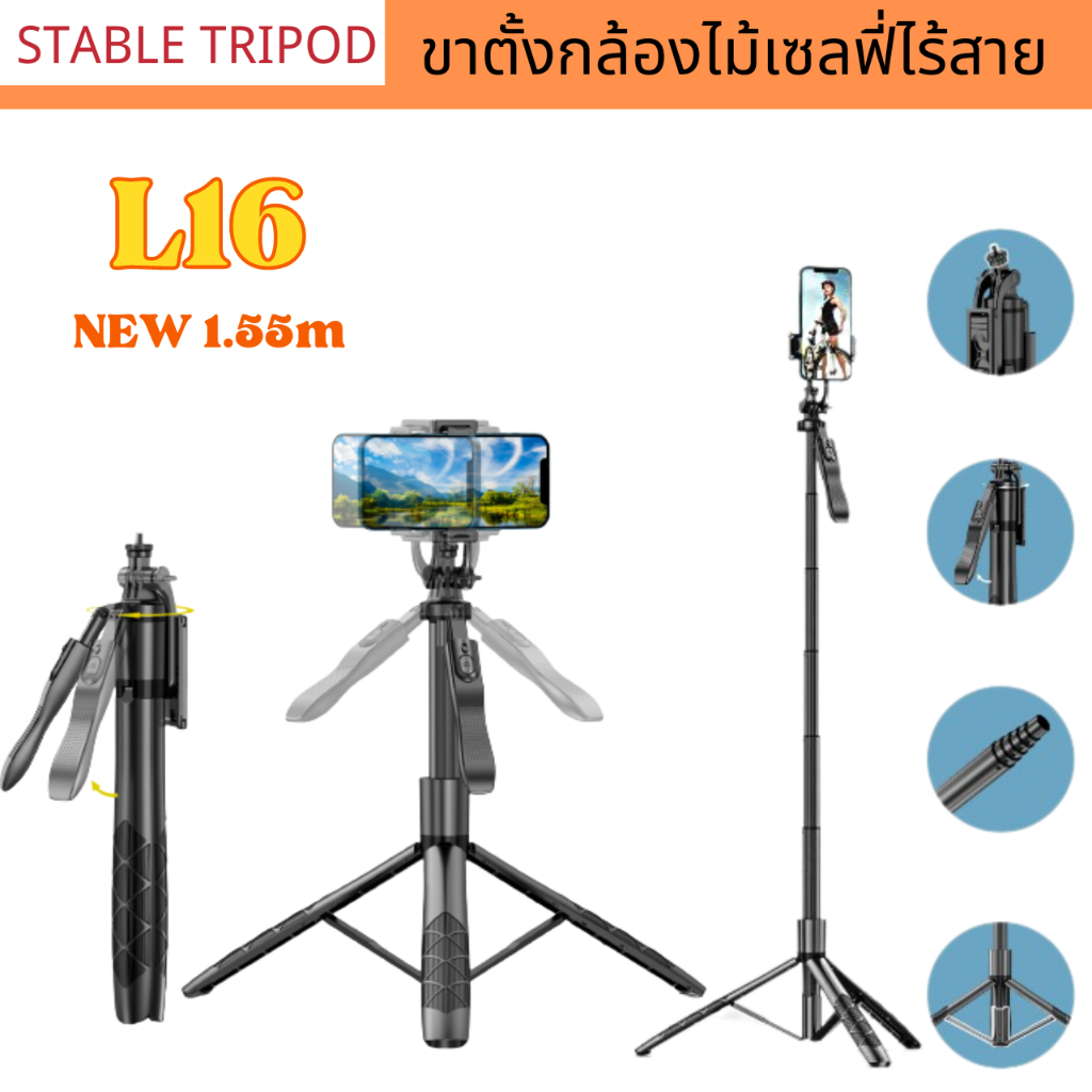 Selfie Stick L16 ไม้เซลฟี่ ยืดได้ถึง 1.55 เมตร มีรีโมทเชื่อมต่อผ่านบลูทูธ
