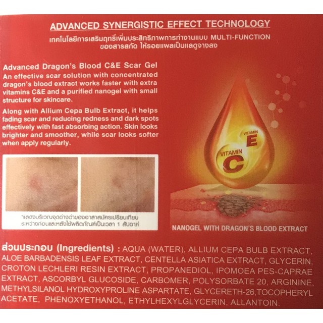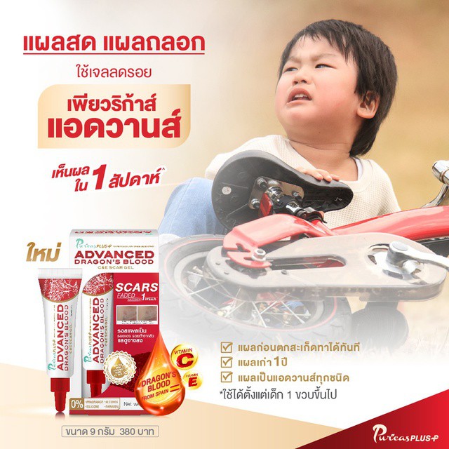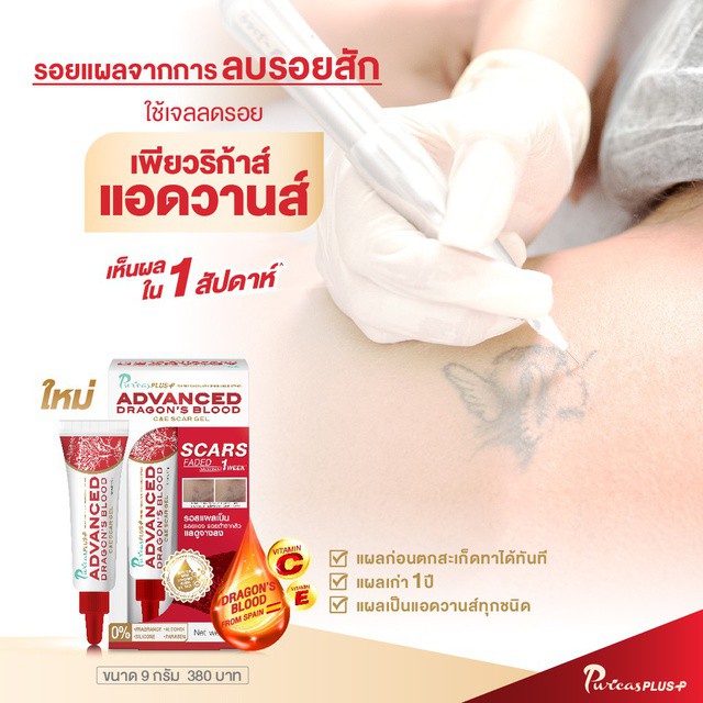 เจลแผลเป็นจากสารสกัดดราก้อนบลัด สูตรที่เข้มข้นขึ้น ผสานกับวิตามิน C และวิตามิน E ช่วยลดเลือนรอยแผลเป็นได้อย่างเป็นธรรมชาติ