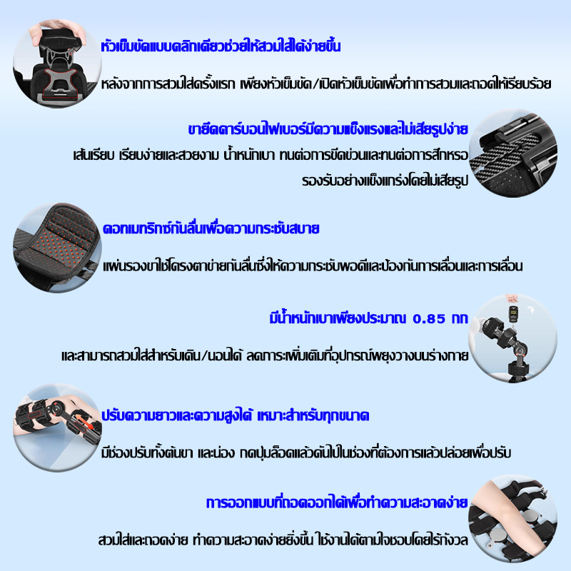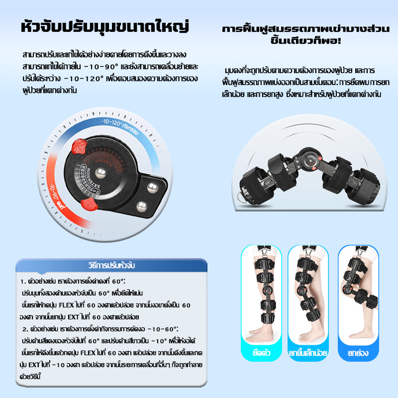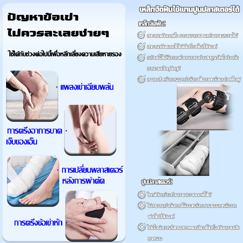 5. – ใช้ได้กับ: การตรึงเอ็นที่ได้รับบาดเจ็บ, การตรึงข้อเข่าหลังการผ่าตัด, การตรึงกระดูกเชิงกรานหลังการผ่าตัด, การตรึงกระดูกน่องหลังการผ่าตัด ฯลฯ