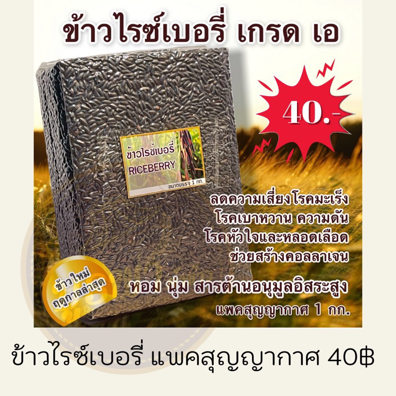 ข้าวไรซ์เบอรี่ เกรด เอ แพ็คสุญญากาศ 1 กก. | หอม นุ่ม น้ำตาลต่ำ