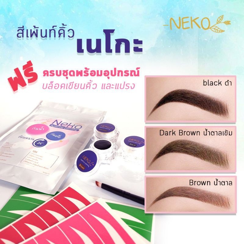 (ครบชุดแถมบล๊อกคิ้ว 12 คู่) สีเพ้นท์คิ้วNeko •สีน้ำตาลเข้ม