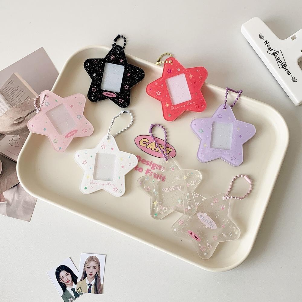 ที่ใส่บัตรนักเรียน 1 นิ้วที่ใส่บัตรนักเรียน Idol กรอบรูปพวงกุญแจดาวจี้อะคริลิคแบบพกพาน่ารัก