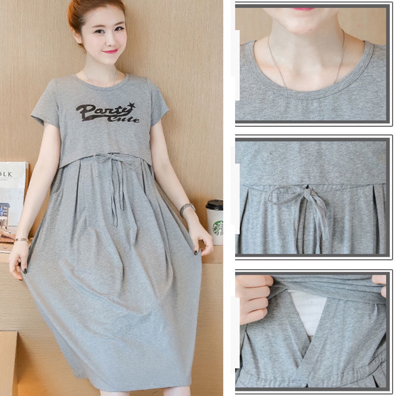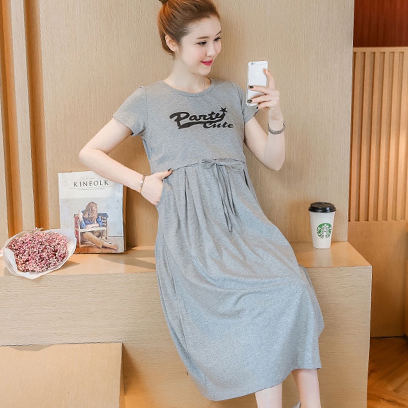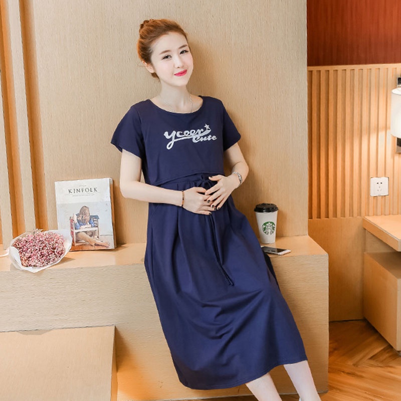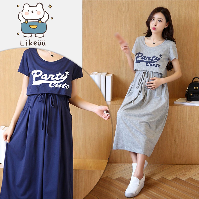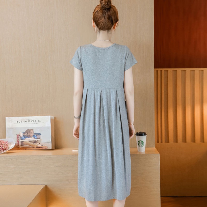 ชุดคลุมท้องเเฟชั่นเกาหลีน่ารักสีพื้นๆเดรสยาวคนท้องเเฟชั่นเดรสลำลองคนท้อง