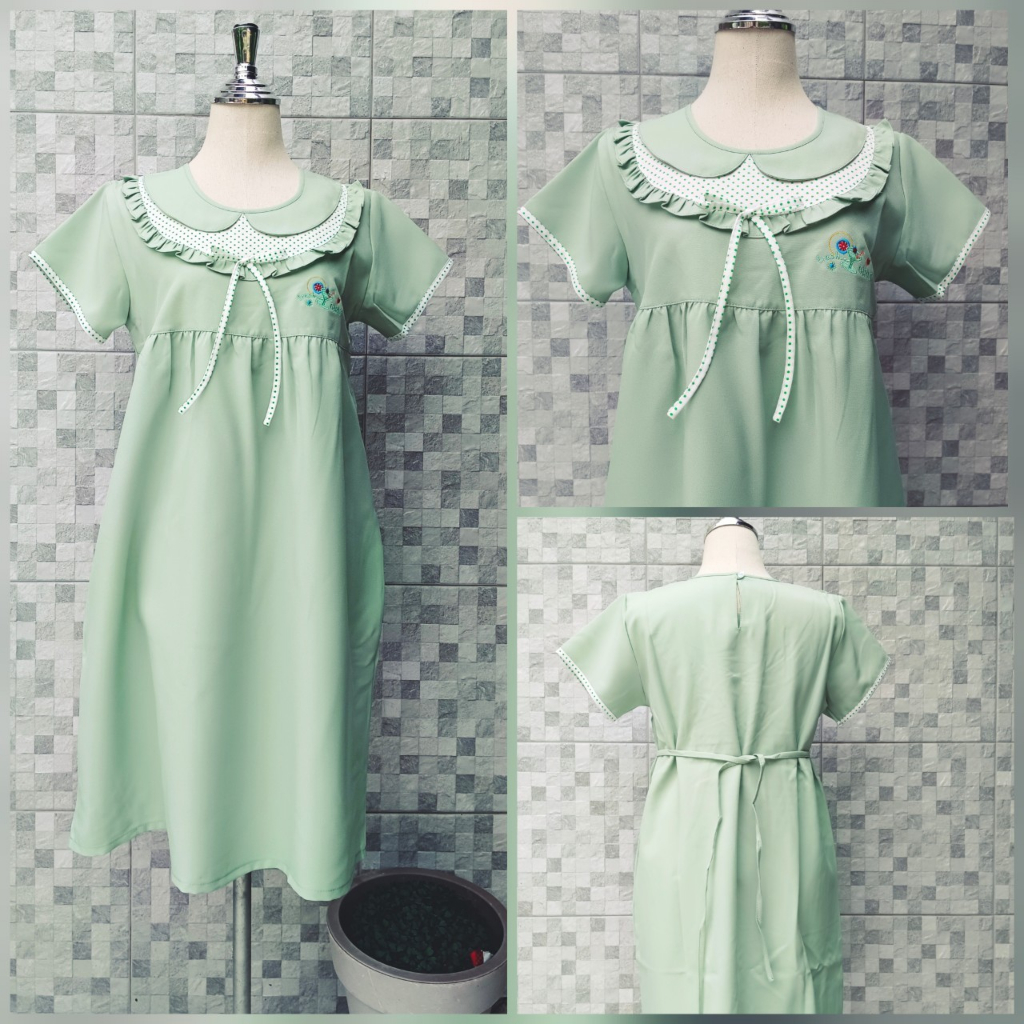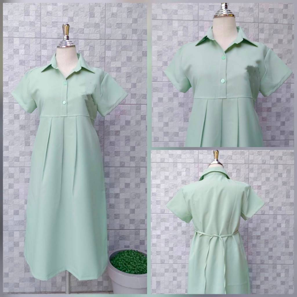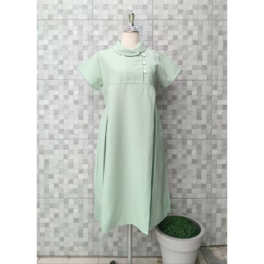 งานใหม่ ผ้าเนื้อดีมากๆ ชุดคลุมท้อง สีเขียวพาสเทล เหมาะสำหรับใส่ทำงาน ใส่ไปหาหมอ น่ารัก