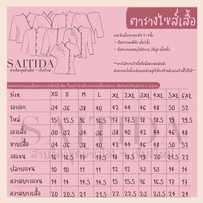 2.เสื้อควรเผื่อจากอกจริง 2-4 นิ้ว (ชอบใส่แบบพอดีตัวเผื่อ2นิ้ว / ชอบใส่หลวมๆเผื่อ4นิ้ว)