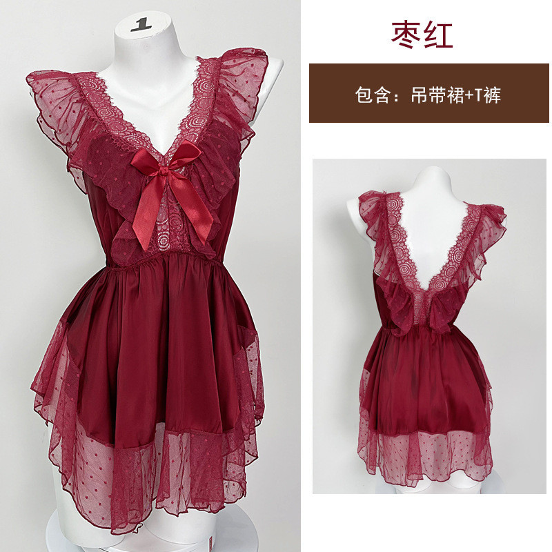 สี: ชุดนอนสีดำ + กางเกงชั้นใน, ชุดนอนสีแดงไวน์ + กางเกง, ชุดนอนสีชมพู + กางเกงใน, ชุดนอนสีขาว + กางเกงชั้นใน