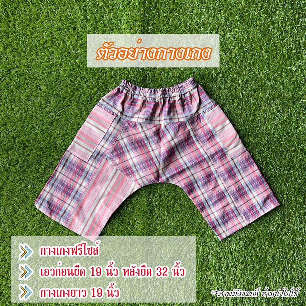 กางเกงฟรีไซส์เอวก่อนยืด 19 นิ้ว หลังยืด 32 นิ้ว / ยาว 19 นิ้ว