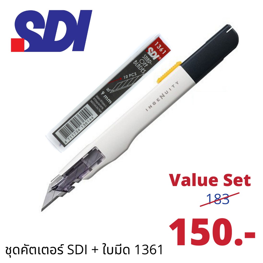 [ชุดรวมของขายดี] SDI เอสดีไอ มีดคัตเตอร์ รุ่น 0443C + อะไหล่ใบมีดคัตเตอร์ 30 องศา รุ่น 1361 ชุดสุดคุ้ม ถูกกว่าซื้อแยก