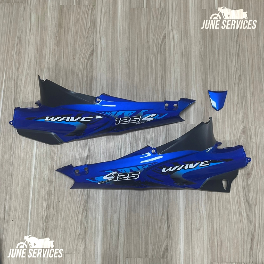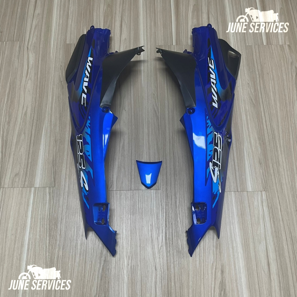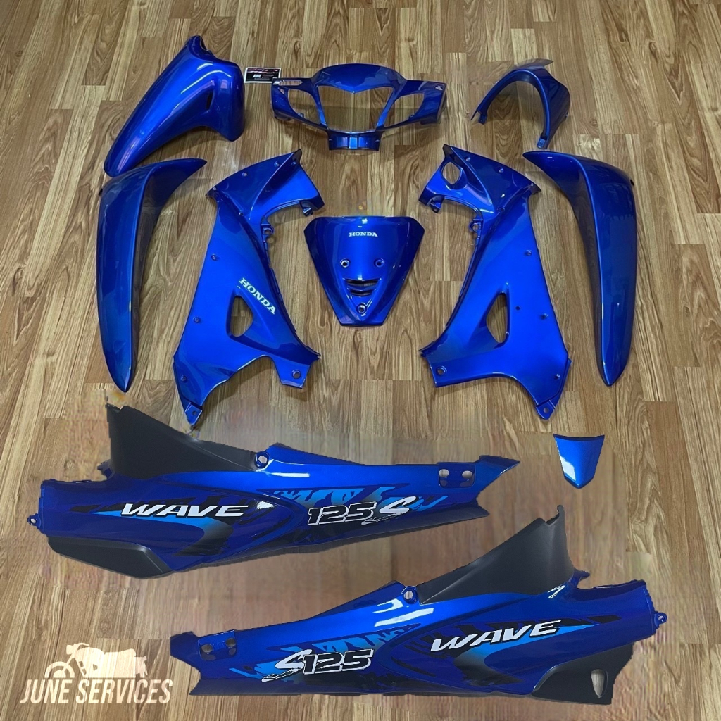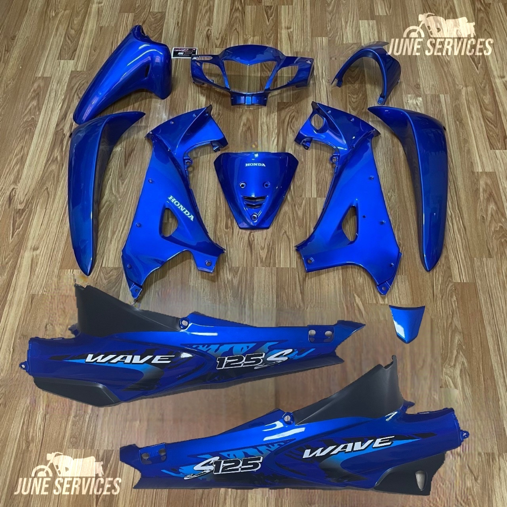 ชุดสี Wave 125 R รูใหญ่ 11 ชิ้น สีน้ำเงินเข้ม(ท้ายตัดดำด้าน) ติดลายแต่ง