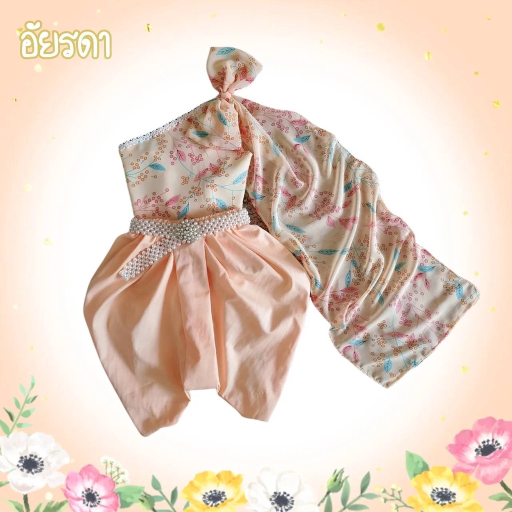 อัยรดา ~ ชุดสไบสำเร็จ แต่งโบว์ตรงบ่า เนื้อผ้าชีฟอง พริ้วมาก นุ่มมาก ไม่ระคายเคืองผิวเด็ก โจงกระเบนเนื้อผ้า คอตตอน100% ทรงสวย ใส่ไม่คันค่ะ