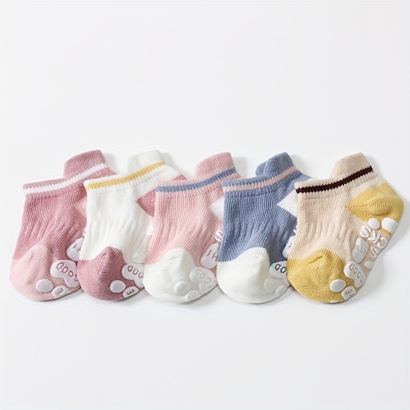 ขอแนะนำส่วนเสริมล่าสุดของเราสำหรับ – คอลเลกชันถุงเท้าและถุงน่อง! เราตื่นเต้นที่จะได้จัดแสดงถุงเท้ากันลื่นสำหรับเด็กหญิง 5 คู่ซึ่งออกแบบมาเป็นพิเศษเพื่อให้ลูกน้อยของคุณสบายและปลอดภัยในขณะที่เดินเตร่ไปรอบ ๆ บ้าน