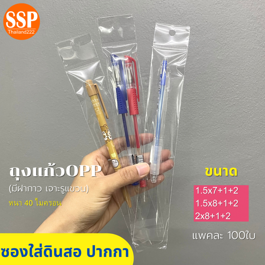 ถุงแก้ว ถุงOPP ถุงแก้วฝากาว เจาะรู ถุงใส่ปากกา ดินสอ ซองใส่ปากกา มีรูแขวนโชว์ ถุงแก้วหัวใส แพ็คละ 100 ใบ