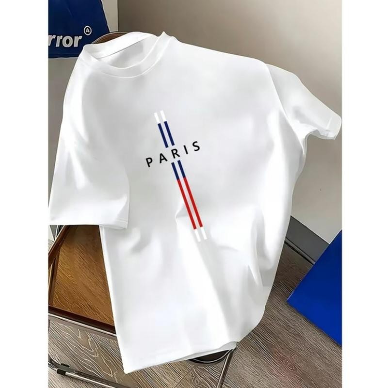 ทีเชิ้ตหลวมสีกลาง ทีเชิ้ตคู่รัก ลายทางสีดำ สีพื้น เหมาะสำหรับชุดทำงาน ชุดกีฬา