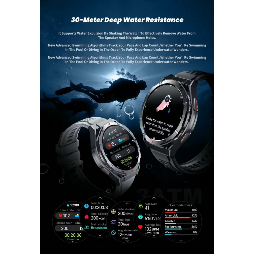 ✅ กันน้ำระดับ 5ATM กันน้ำได้ลึก 50 เมตร ใส่ว่ายน้ำได้สบายมากๆ