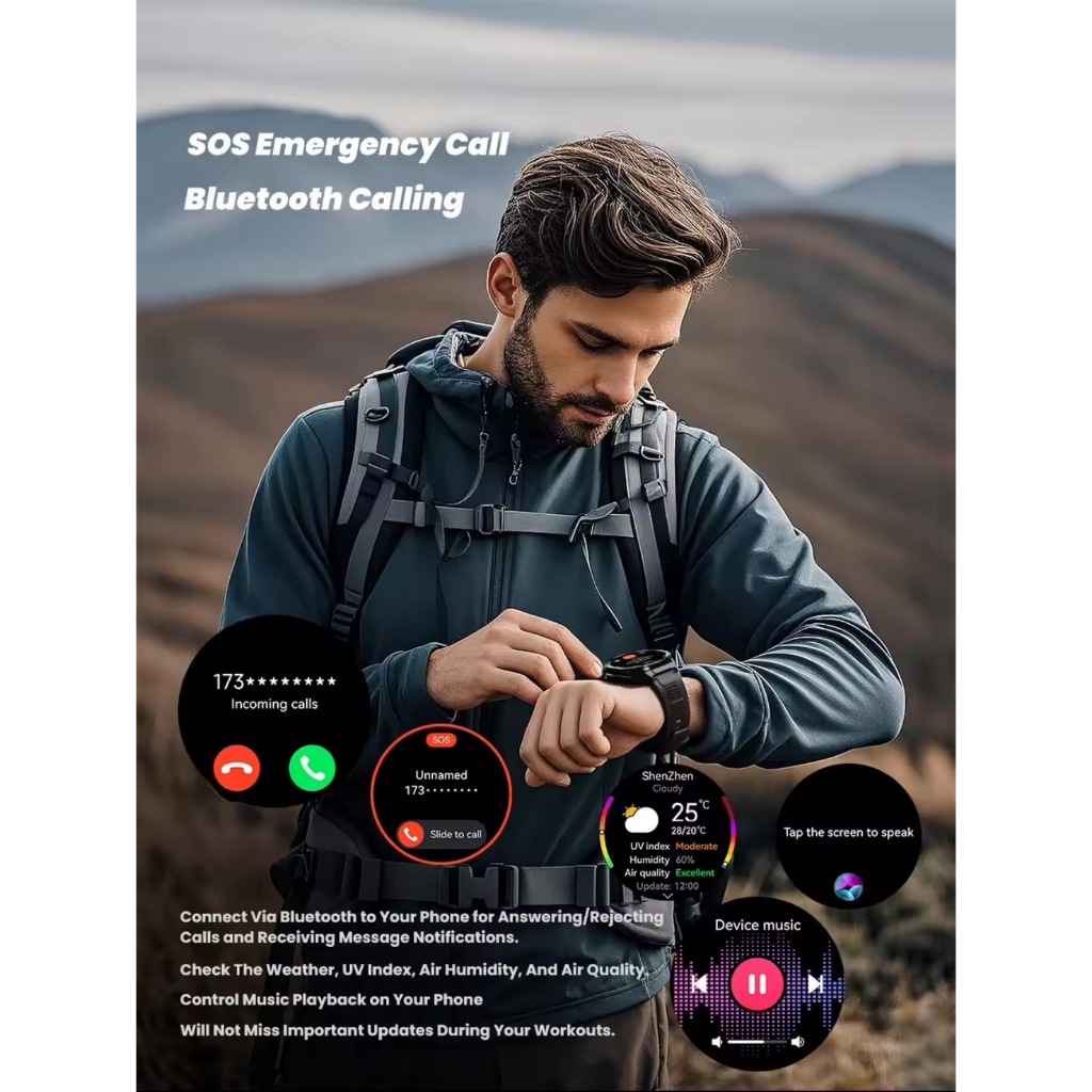 ✅ มีลำโพงกันน้ำสามารถเชื่อมต่อบลูทูธกับมือถือ เพื่อรับสาย/โทรคุยผ่านทางนาฬิกาได้โดยตรง(มีไมค์ที่ตัวนาฬิกา) เปิดเพลงผ่านลำโพงของนาฬิกาได้