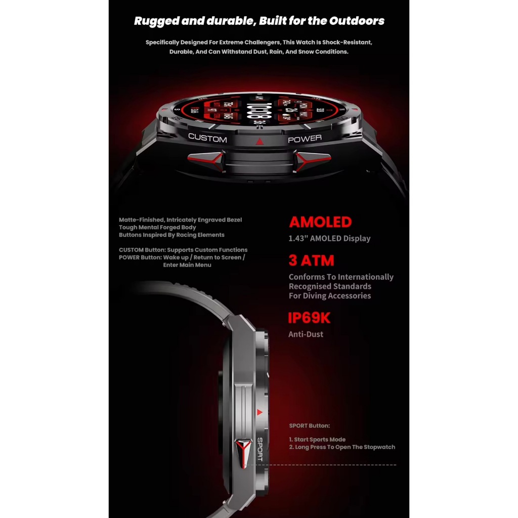 ✅ หน้าจอ AMOLED ขนาดใหญ่ 1.43 นิ้ว มองชัดเจนกว่า ความคมชัดสูง 466×466 พิกเซล (326 PPI)