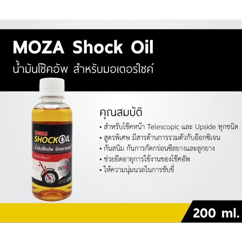 น้ำมันโช๊ค MOZA 200ml. SAE10W สีเหลือง-ทองใส คุณภาพดี มีมาตรฐาน สำหรับมอเตอร์ไซค์ทุกรุ่น (ราคาต่อ1ขวด)