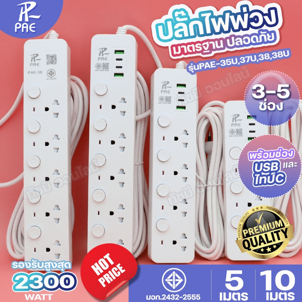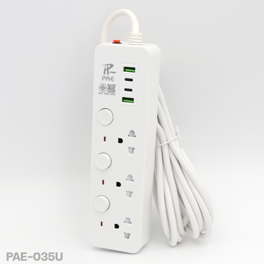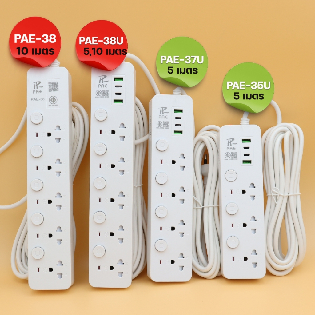 ปลั๊กไฟ รุ่น PAE-35U PAE-37U PAE-38U PAE-38 ความยาว 3เมตร 5เมตร 10เมตร