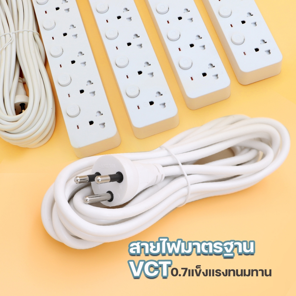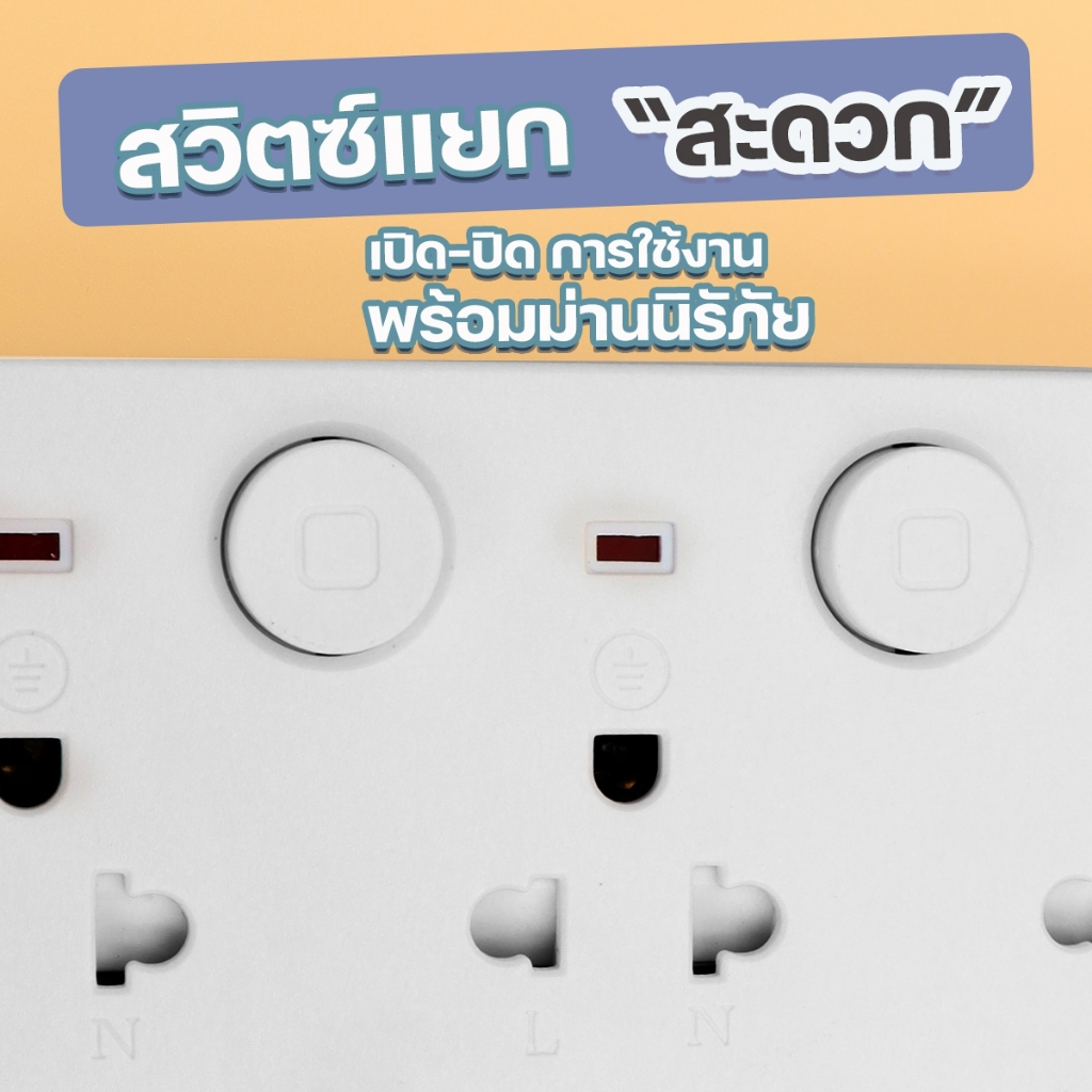 ปลั๊กสายต่อพ่วง มีสวิตช์เปิดปิด ควมคุมช่อง ปลักไฟเอนกประสงค์มาตรฐาน มอก.