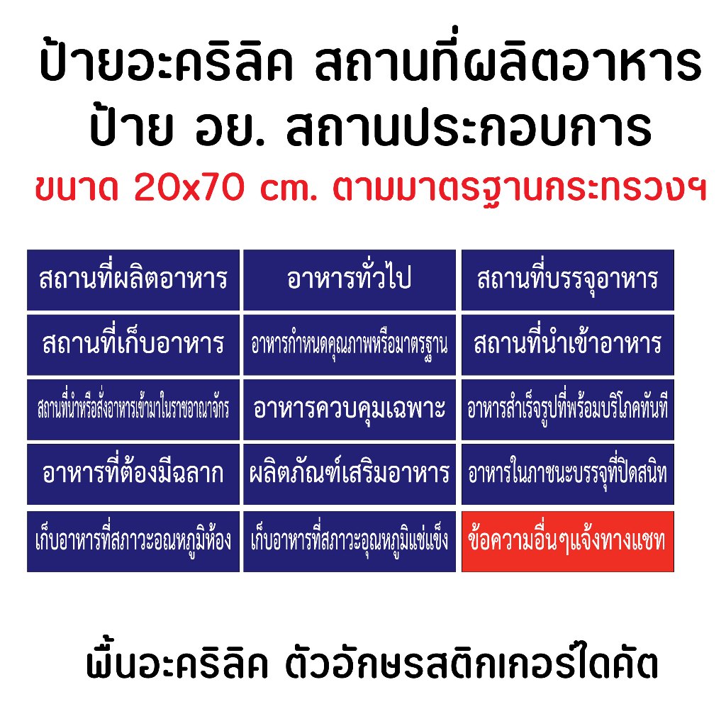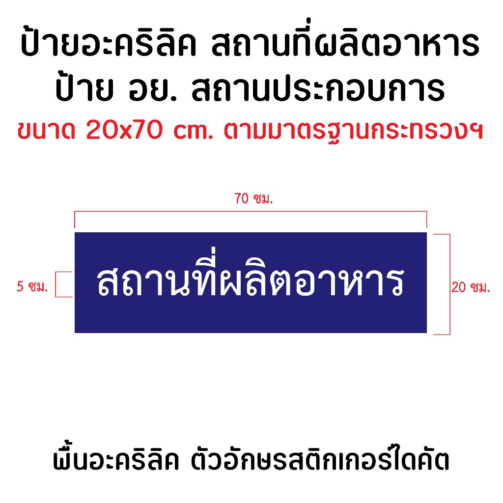 ป้ายอะคริลิค สถานที่ผลิตอาหาร ป้าย อย. สถานประกอบการฯ **มีข้อความให้เลือก