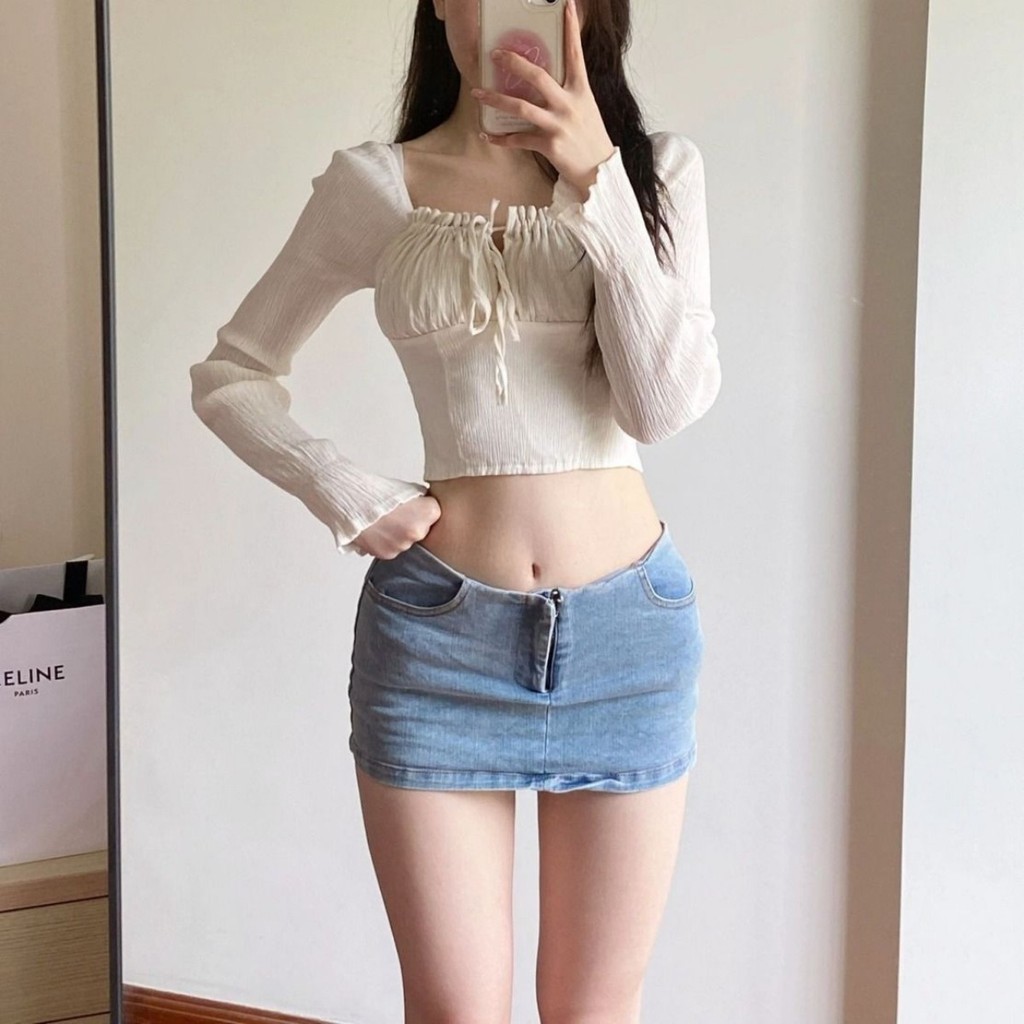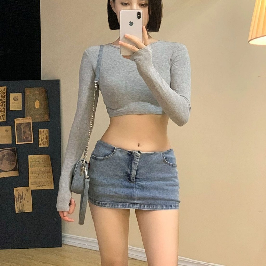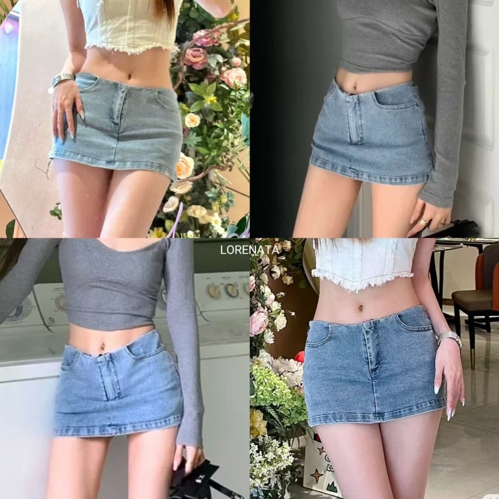 (พร้อมที่จะจัดส่งในกรุงเทพ) ผู้หญิงสไตล์ใหม่ ผ้ายีนส์ทรงเข้ารูป กระโปรงสะโพกเซ็กซี่-Z293