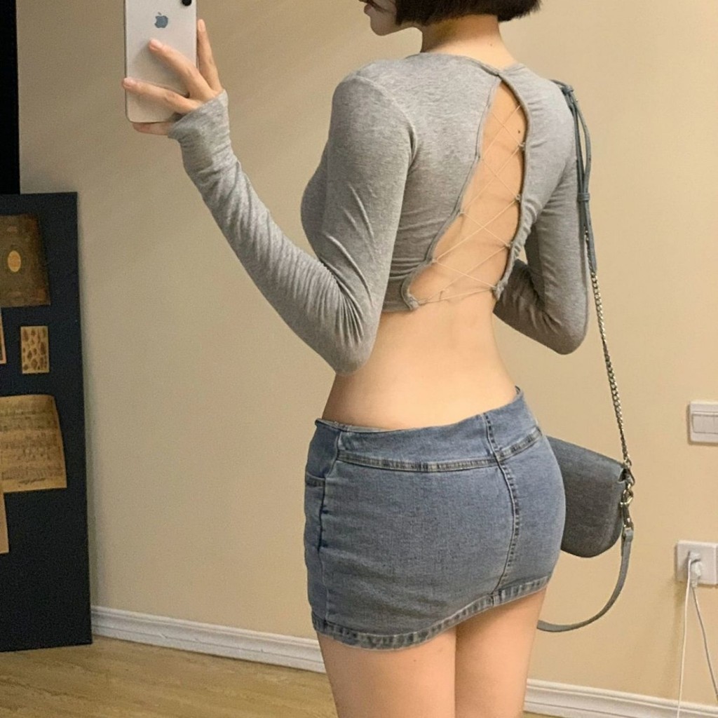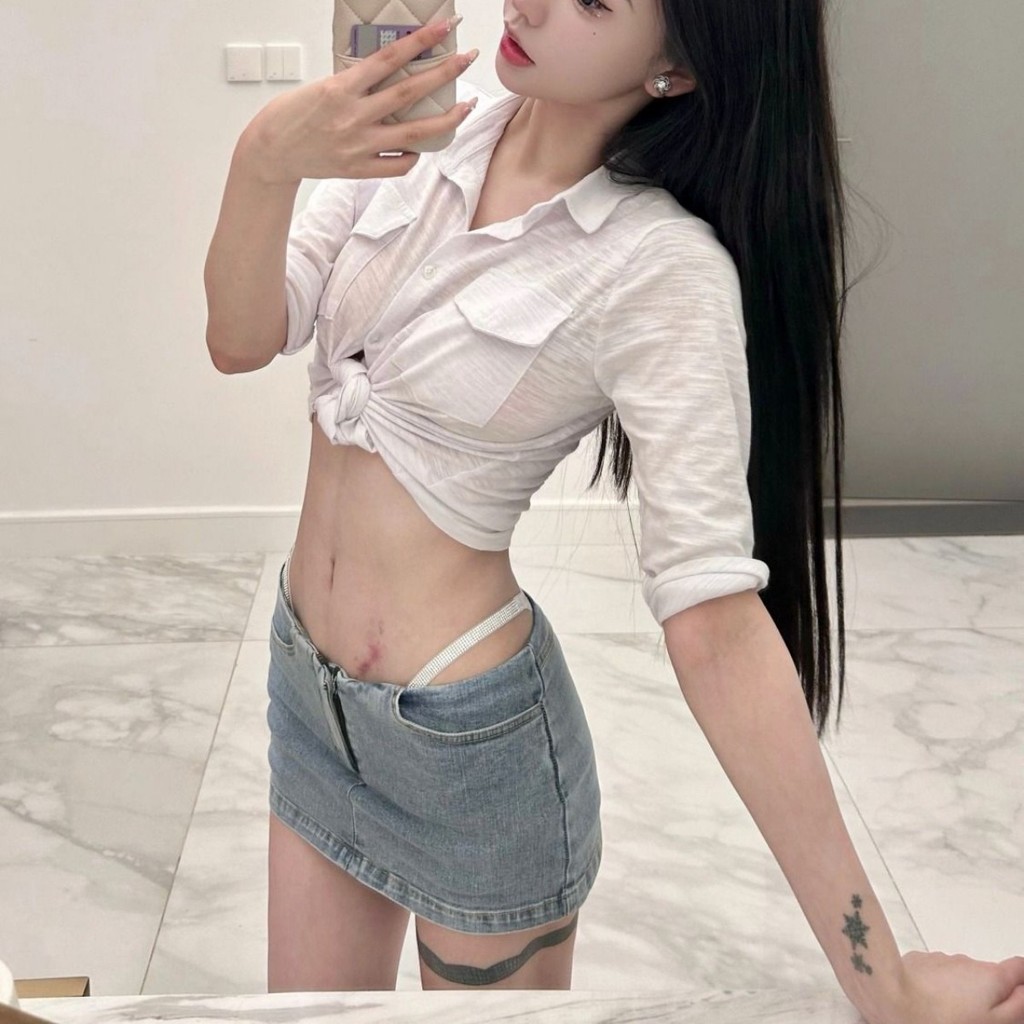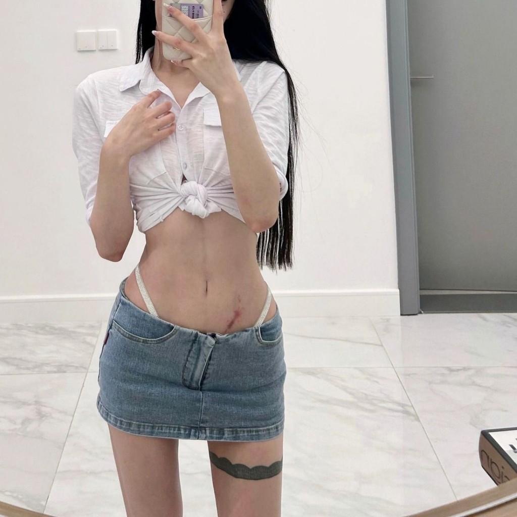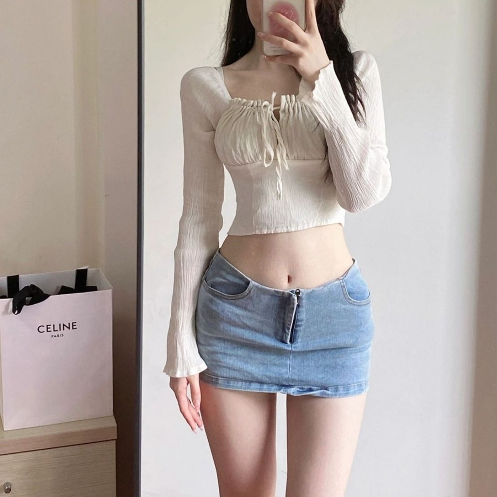 (พร้อมที่จะจัดส่งในกรุงเทพ) ผู้หญิงสไตล์ใหม่ ผ้ายีนส์ทรงเข้ารูป กระโปรงสะโพกเซ็กซี่-Z293