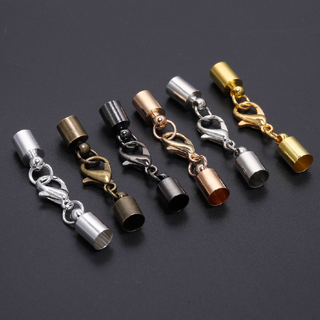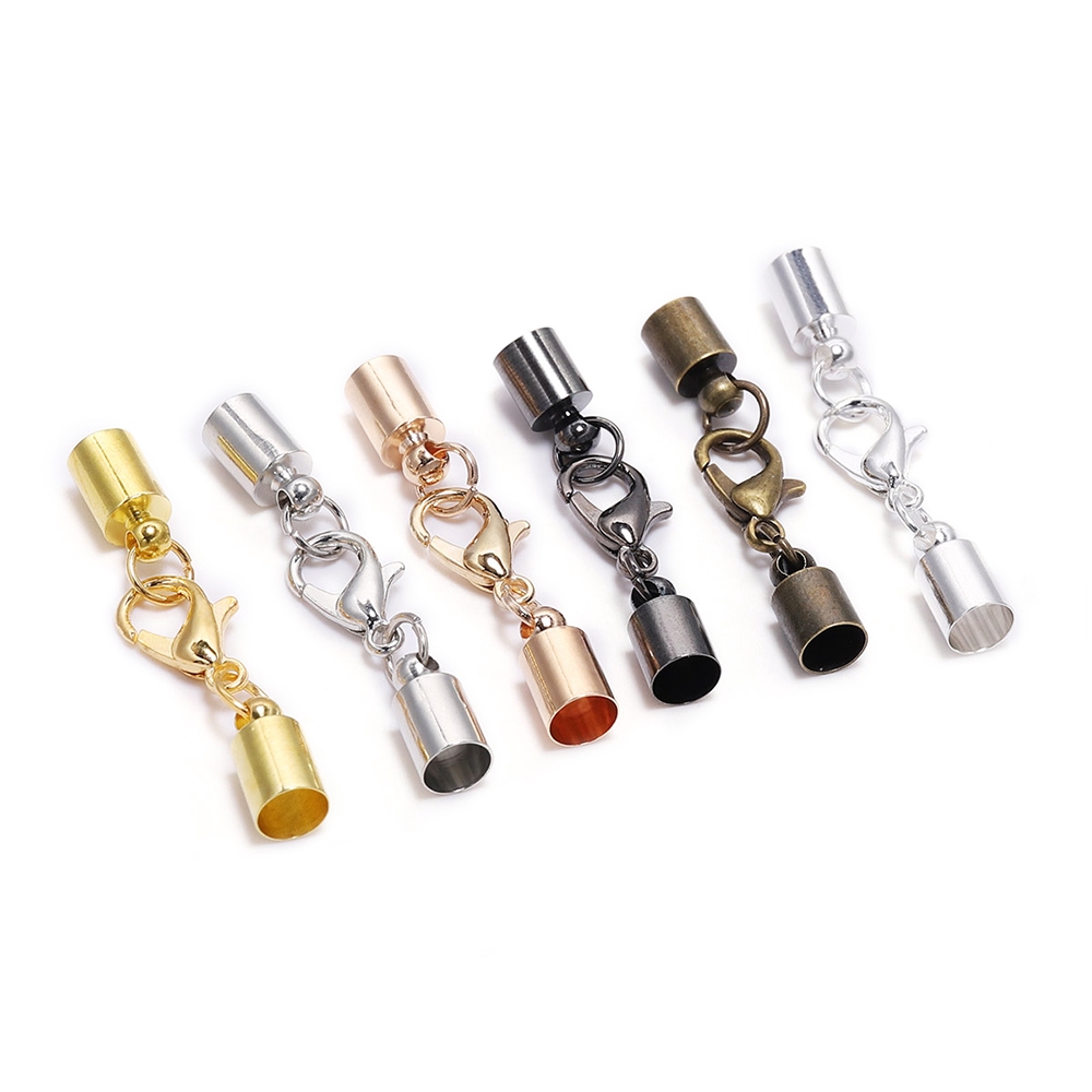 10pcs/Lot Leather Cord Bracelet Lobster Clasps Hooks 3 4 5 6 8 9 10mm Crimps End Tip Caps Connectors For Jewelry Making Findings