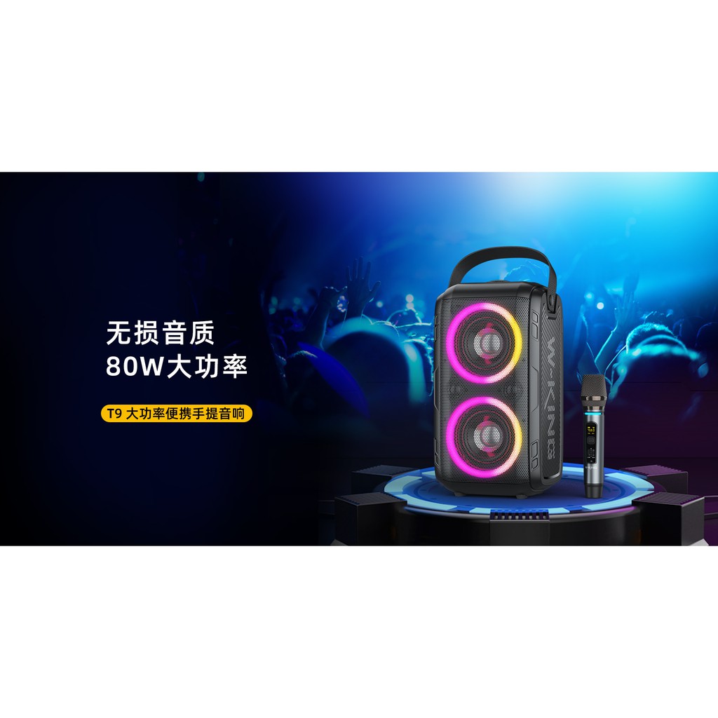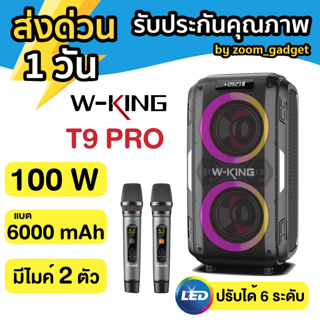 W-king T9pro กำลังขับ 100W รุ่นใหม่ล่าสุด ลำโพงบลูทูธ มีไฟ LED พร้อมไมค์โครโฟน2อันให้ในชุด + รีโมต ทั้งฟังทั้งร้อง มันส์ สนุก เบสแน่น เสียงกระหึ่ม สายปาร์ตี้ต้องโดน !!