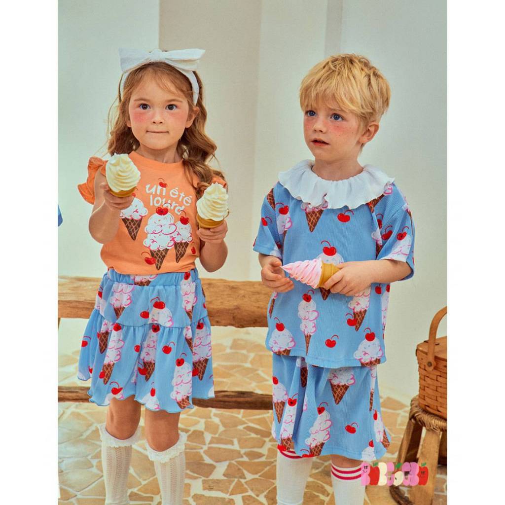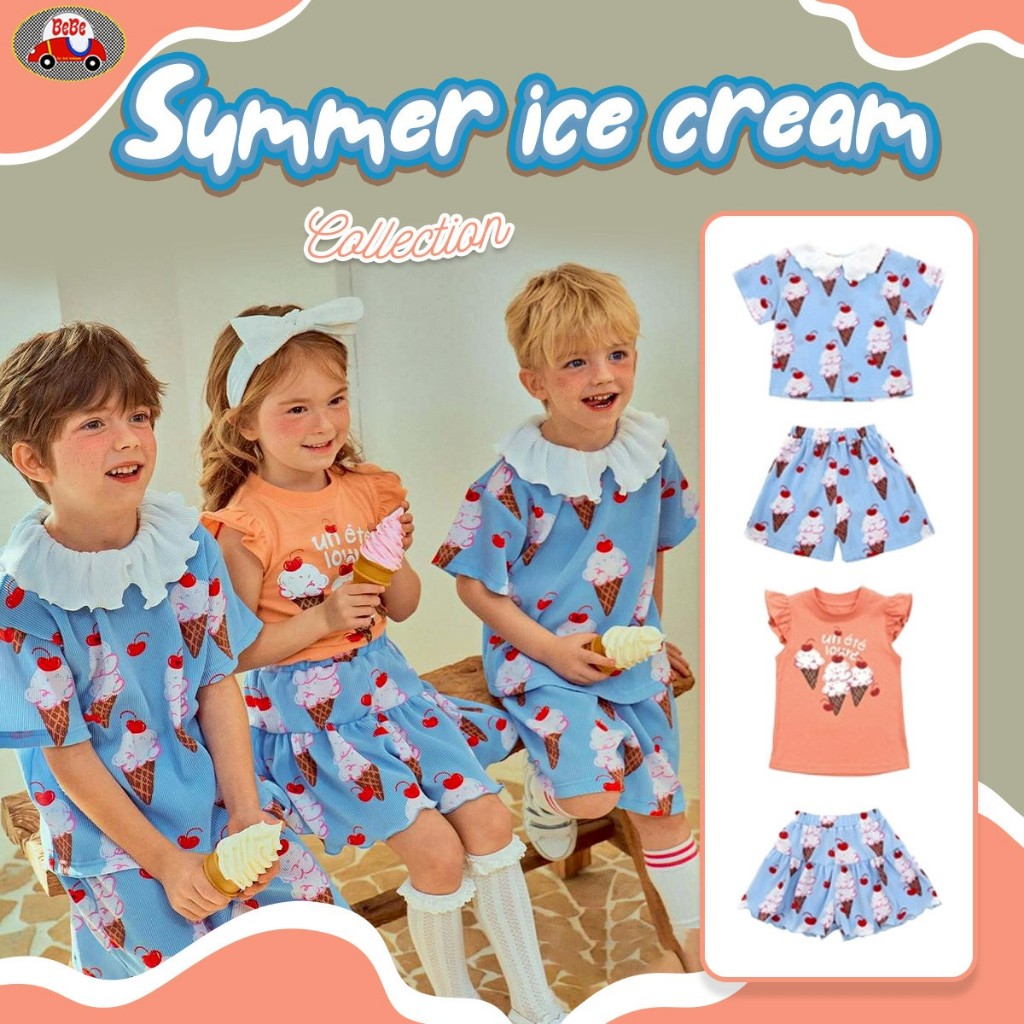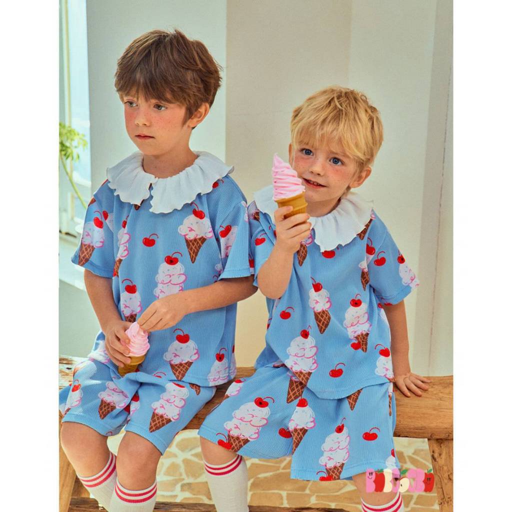 ชุดเด็กหญิและเด็กผู้ชาย ลายไอติม สีฟ้า ชุดเซ็ตน่ารักมากเลยค่ะ