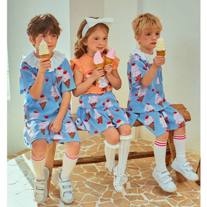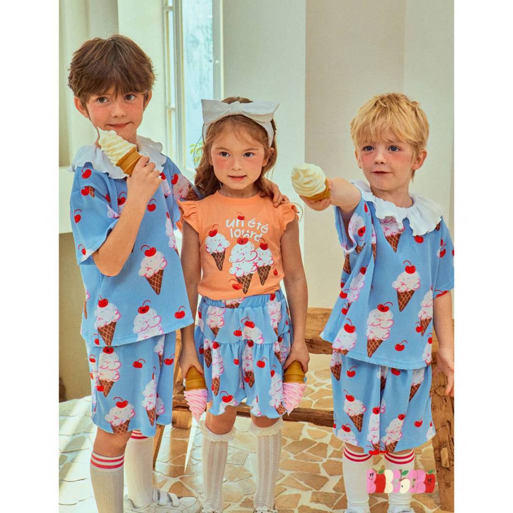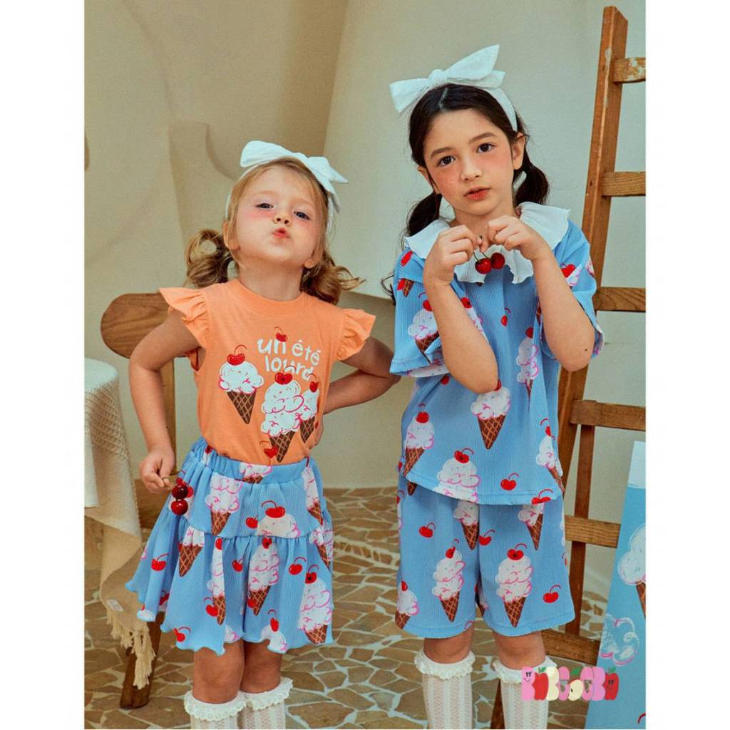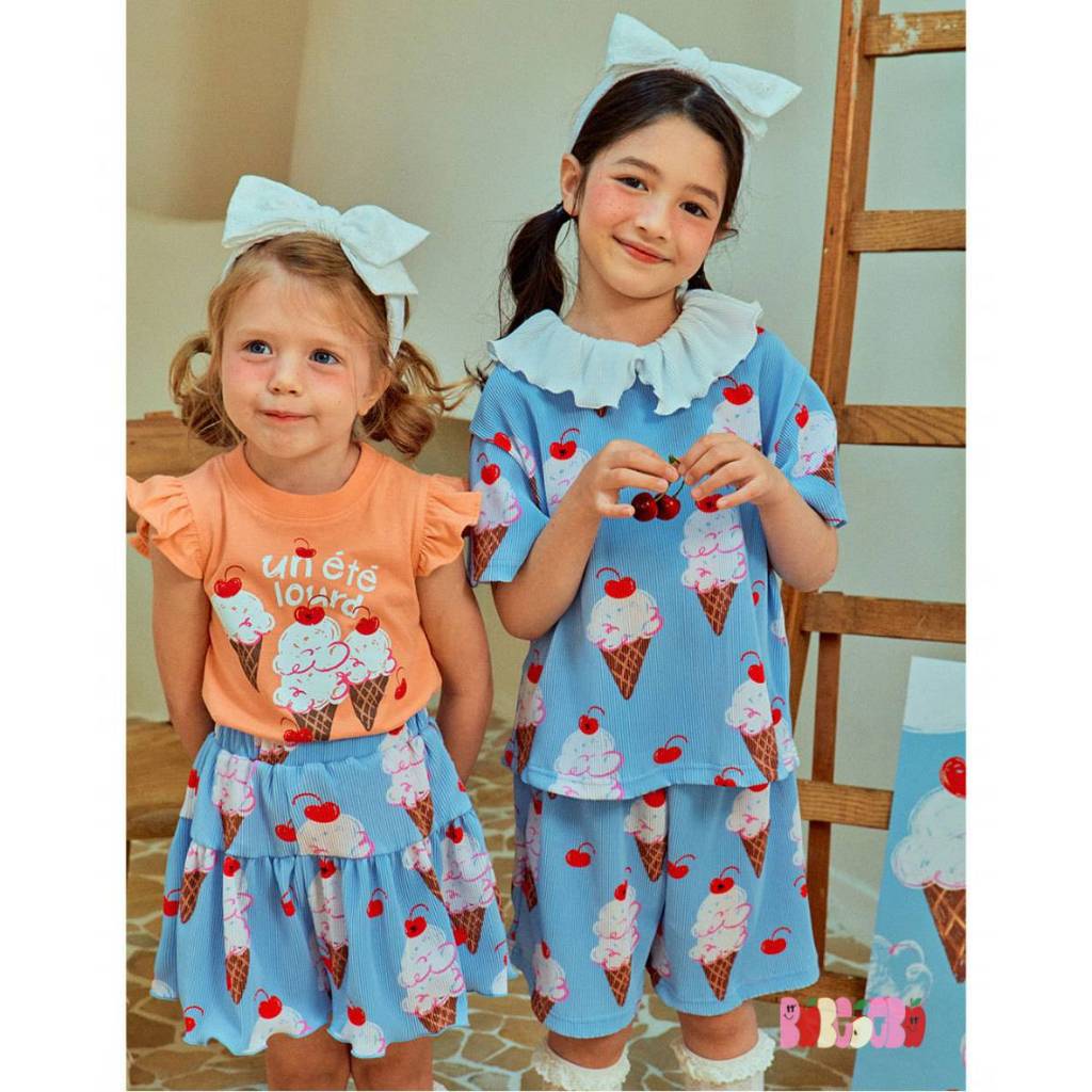ชุดเด็กหญิและเด็กผู้ชาย ลายไอติม สีฟ้า ชุดเซ็ตน่ารักมากเลยค่ะ