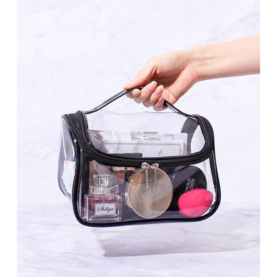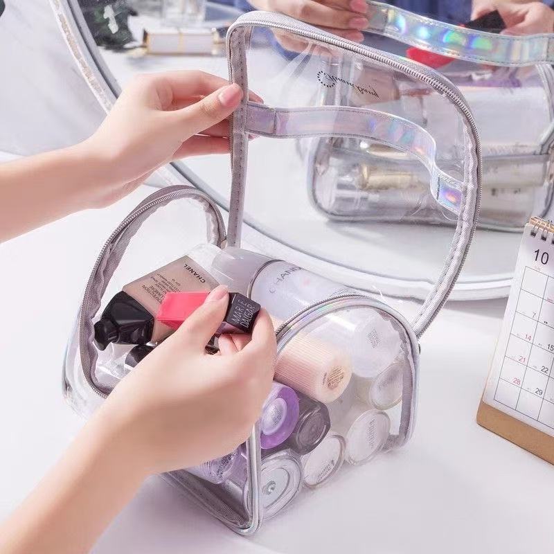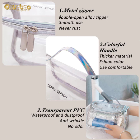 รูปลักษณ์ที่สวยงาม: ตัวกระเป๋า PU โปร่งใสเต็มรูปแบบขอบกระเป๋าสีพราวทันสมัยและสวยงามทำให้การเดินทางของคุณน่าทึ่งยิ่งขึ้น