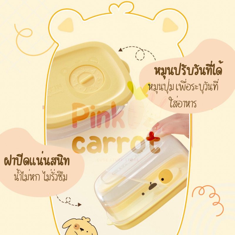 มีที่หมุนสำหรับระบุวันที่ในวันที่บรรจุอาหาร เป็นตัวเลข 1-7 (จันทร์-อาทิตย์) ทำให้ทราบว่าเราเริ่มเก็บอาหารวันไหน