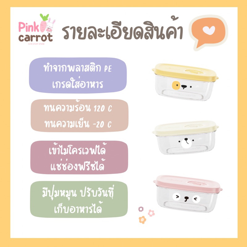 **ในกล่องจะมีสติ๊กเกอร์ลายหน้าหมี ลูกค้าสามารถเลือกตำแหน่งในการแปะได้เองตามใจชอบค่ะ แปะแล้วเข้าไมโครเวฟไ้ด้ตามปกติค่ะ