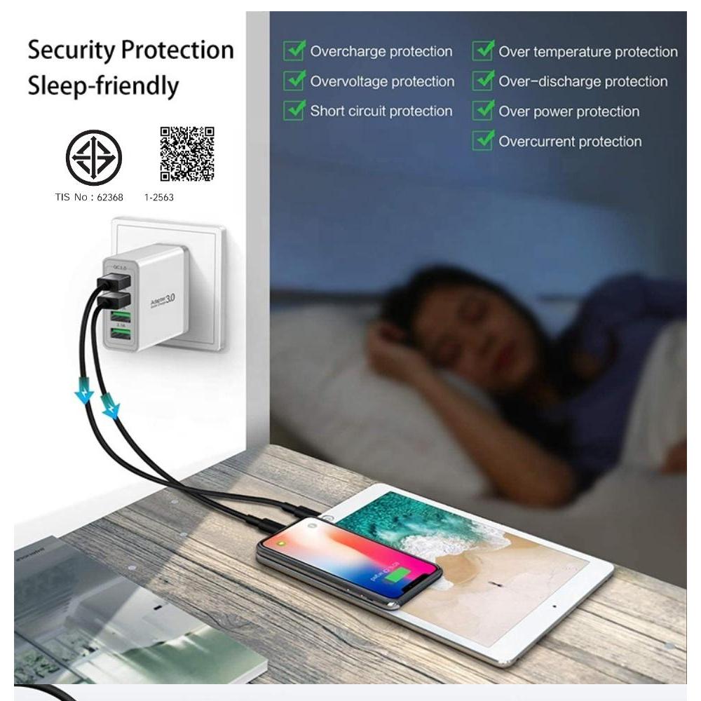 มีไมโครชิพ IC อัจฉยริยะในตัว แบ่งไฟอัตโนมัติ เมื่อชาร์จพร้อมกันทั้ง 4 port