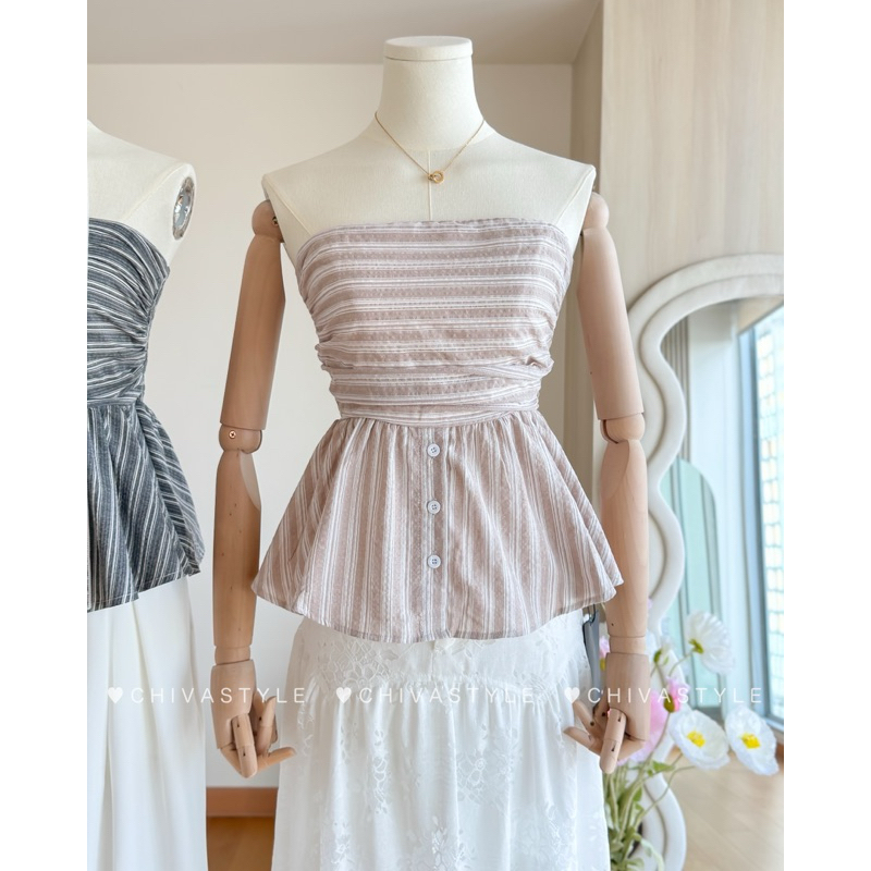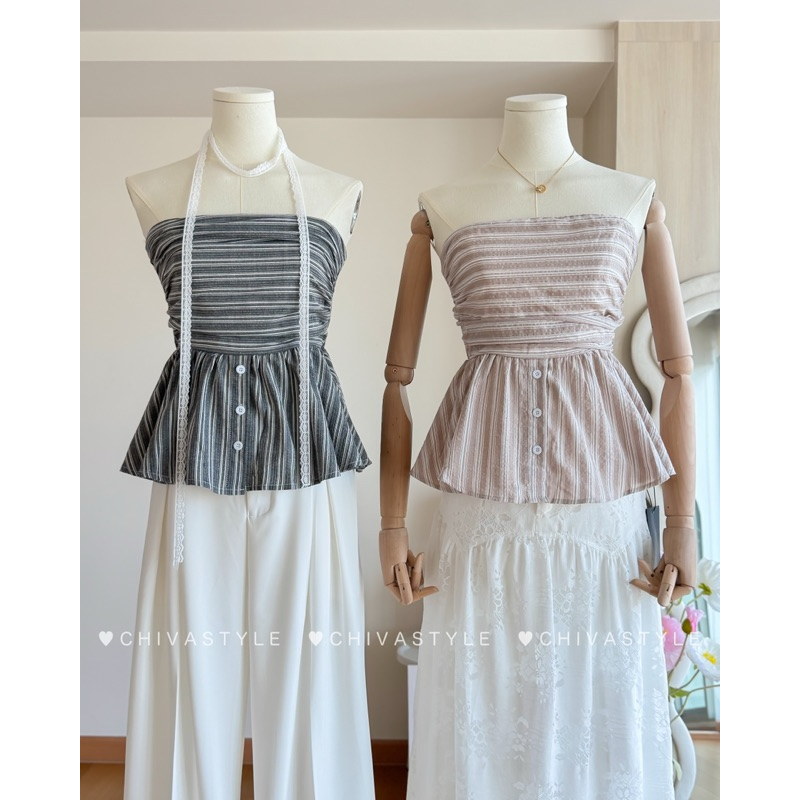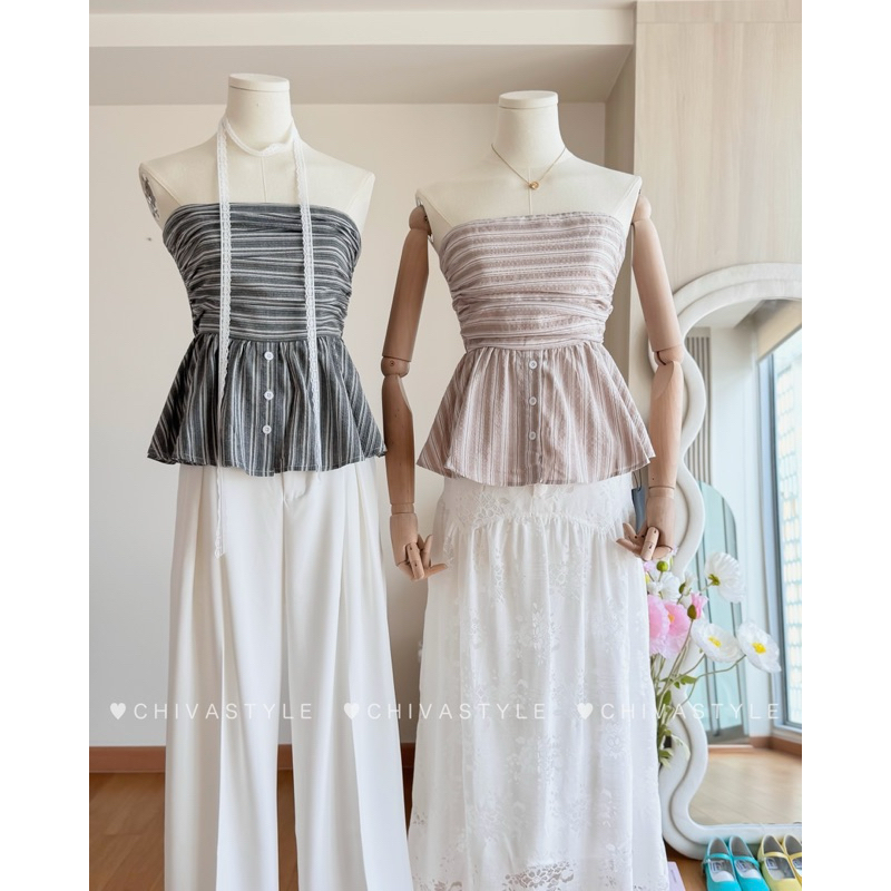 | เสื้อเกาะอกลายทาง(มียางกันลื่น)**